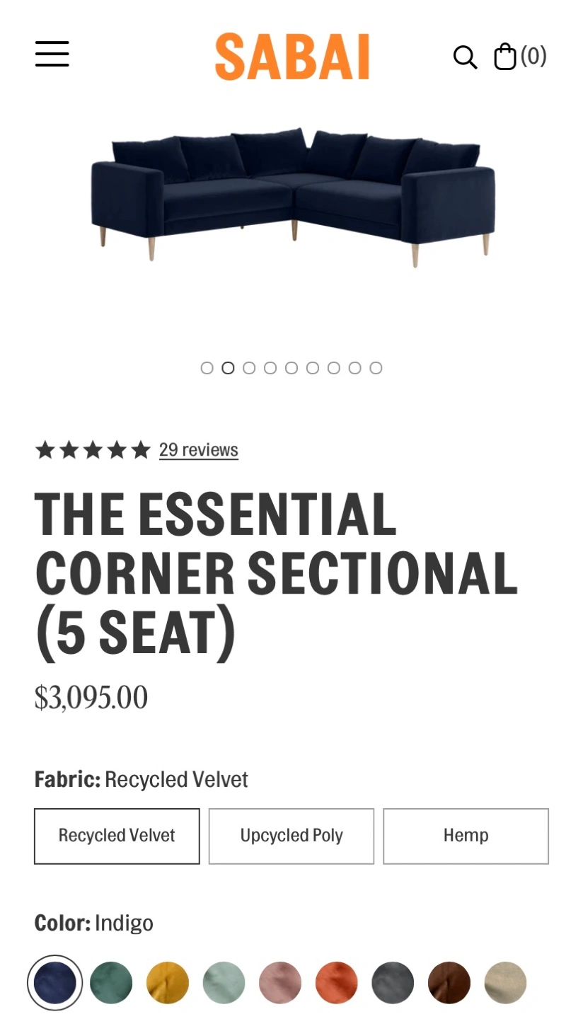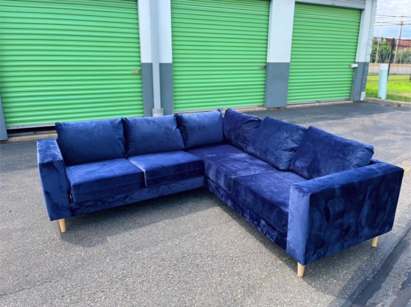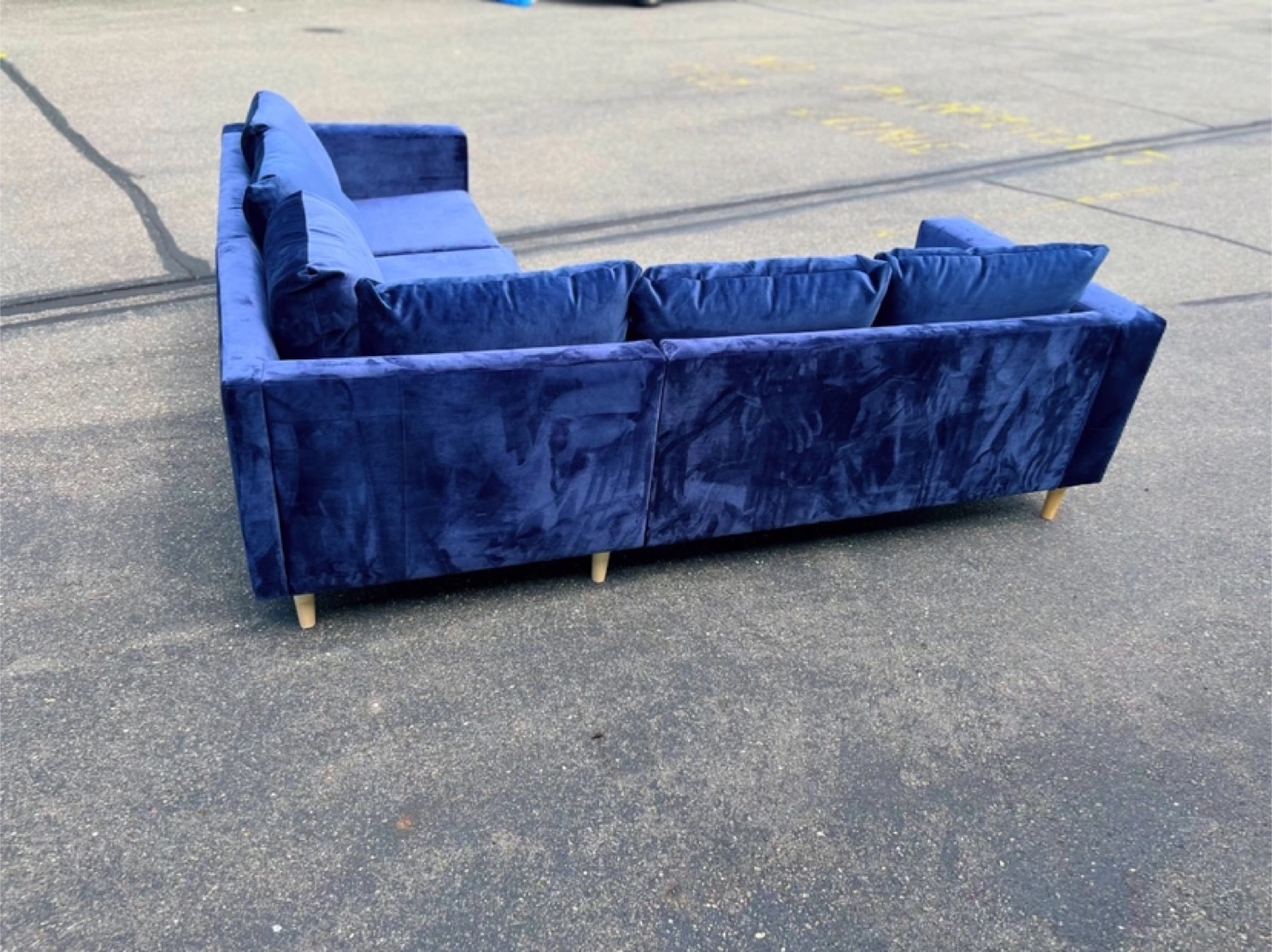 Selling a SABAI The Essential Corner Sectional (5 Seat) in Blue color. This stylish sectional features a recycled velvet fabric, offering both comfort and sustainability. Originally priced at $3,095, this is a great opportunity to own a high-quality piece of furniture at a fraction of the cost