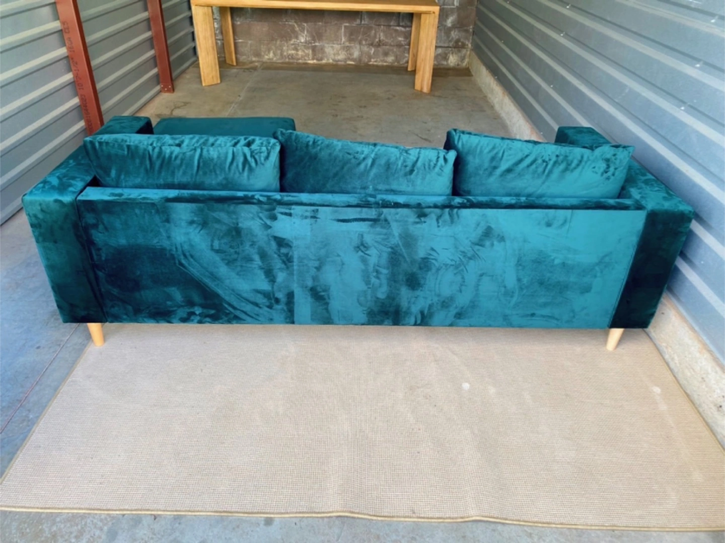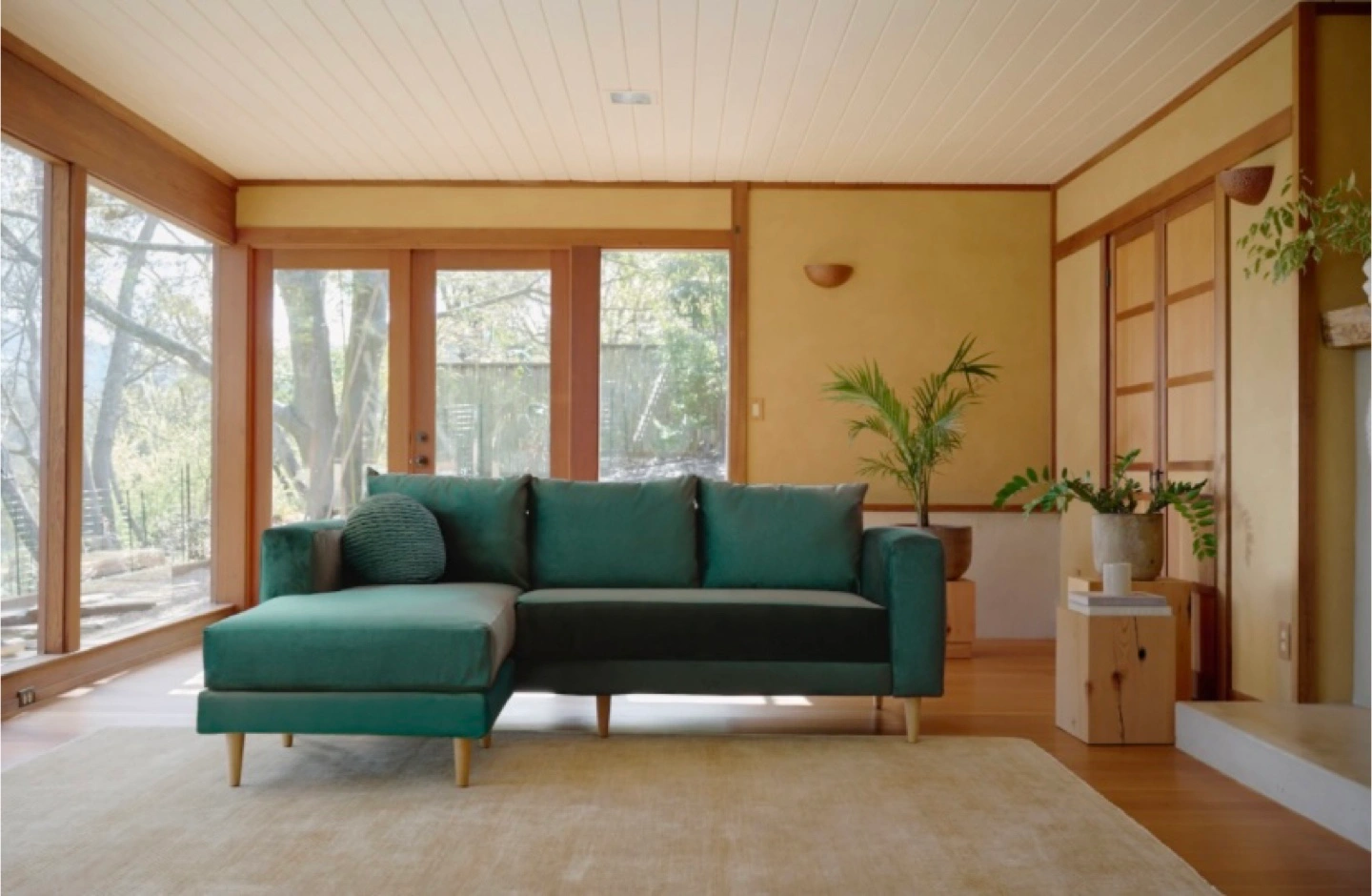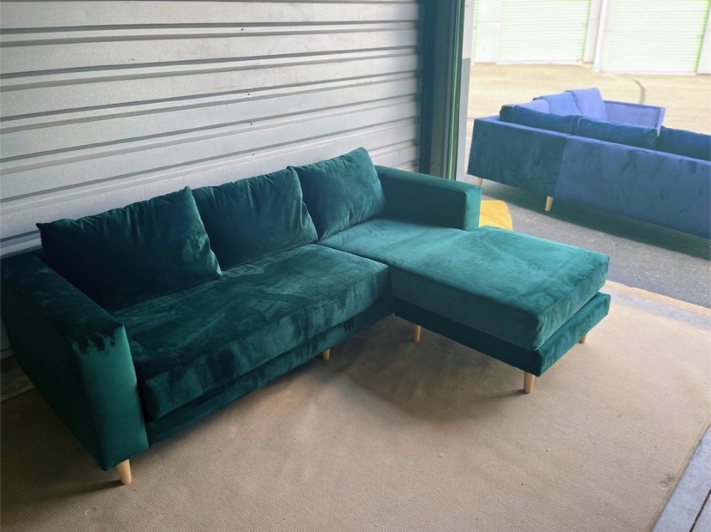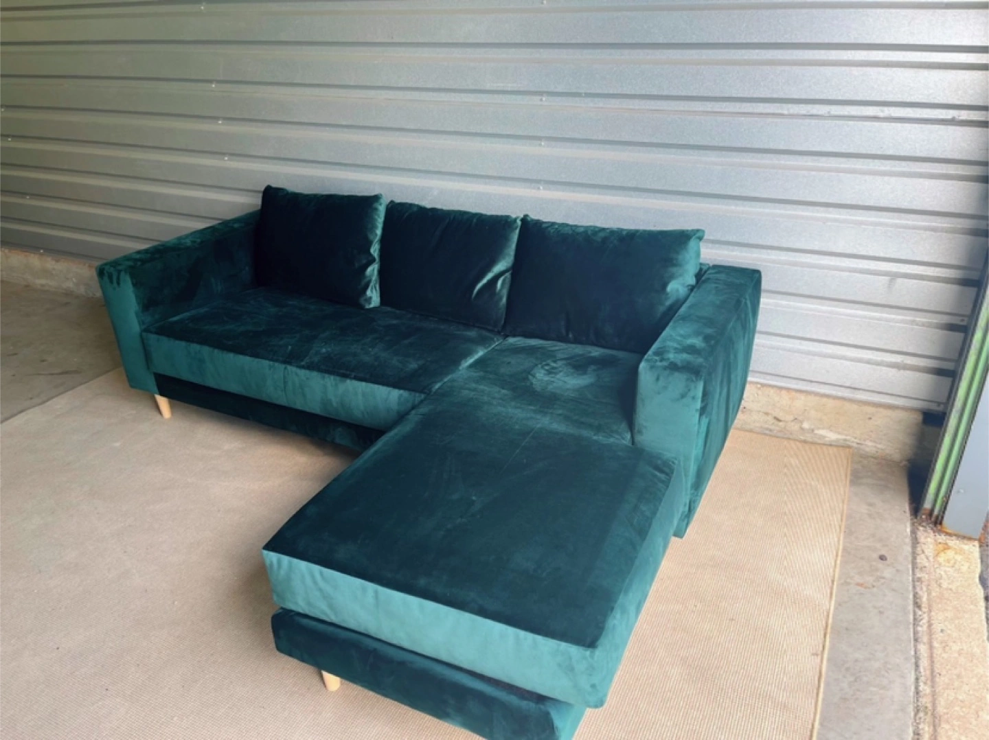 65Selling a Sabai The Essential Sectional in Moss color. This stylish sectional features a recycled velvet fabric. Originally priced at $1,995.00, it's a great deal for a comfortable and eco-friendly piece of furniture!