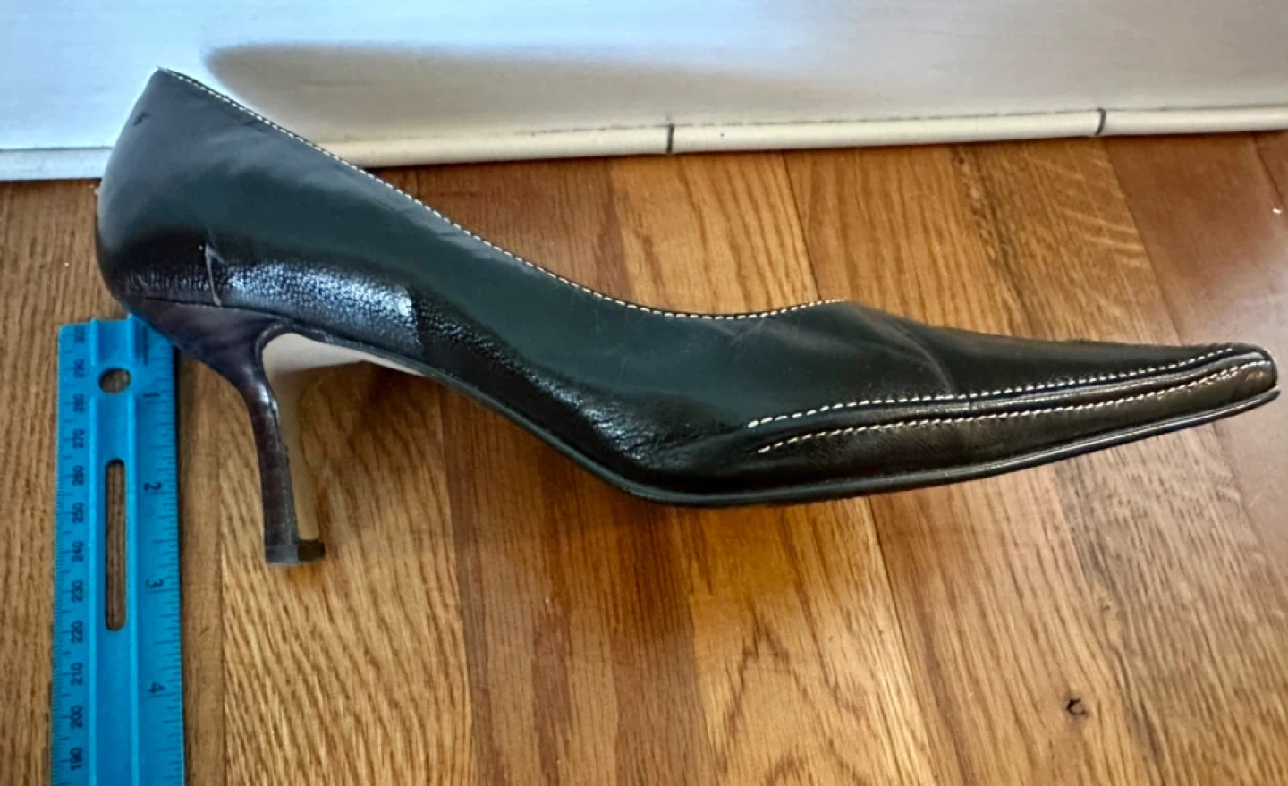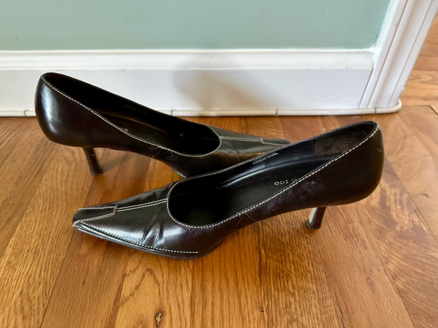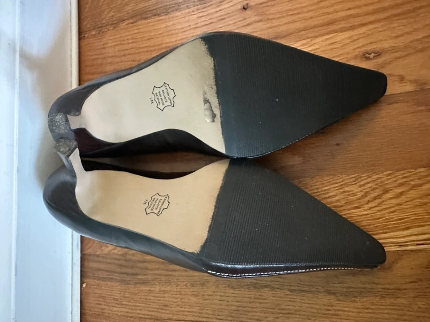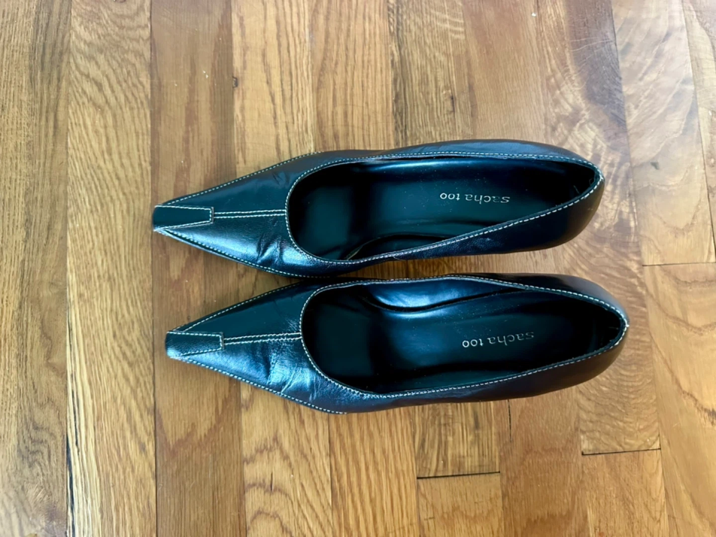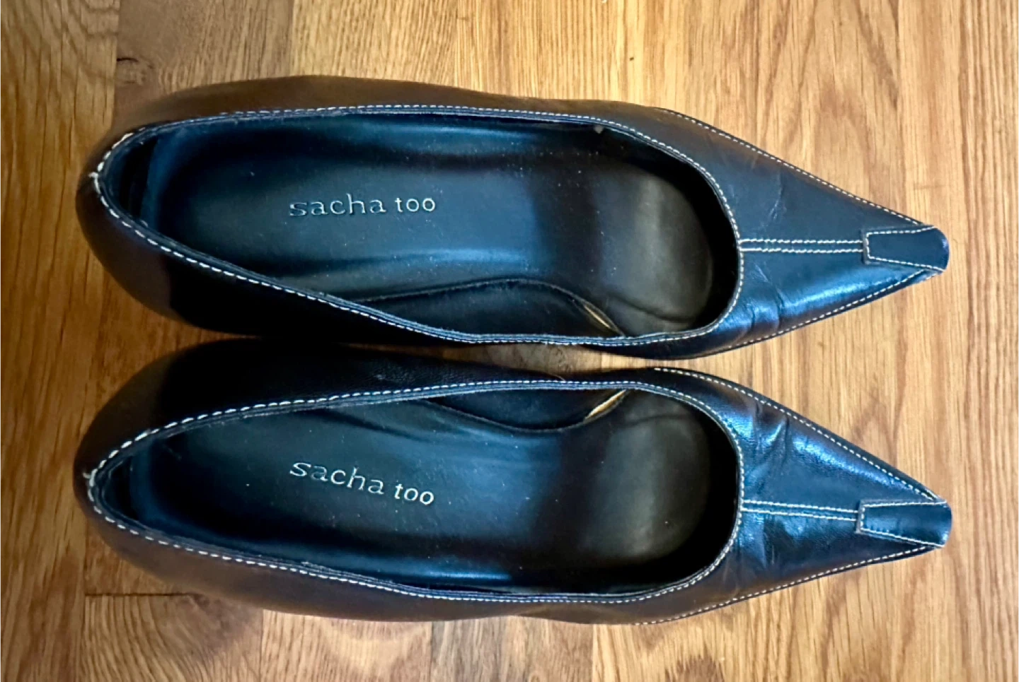 76Selling a pair of Sacha Too black leather heels in size 7M. They have a stylish pointed toe and are in good condition, perfect for dressing up any outfit!