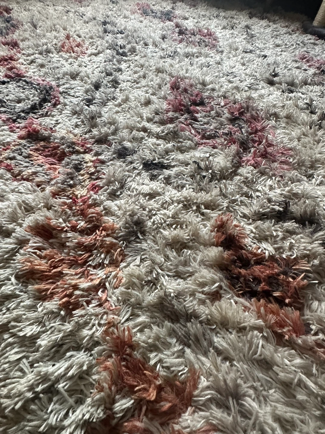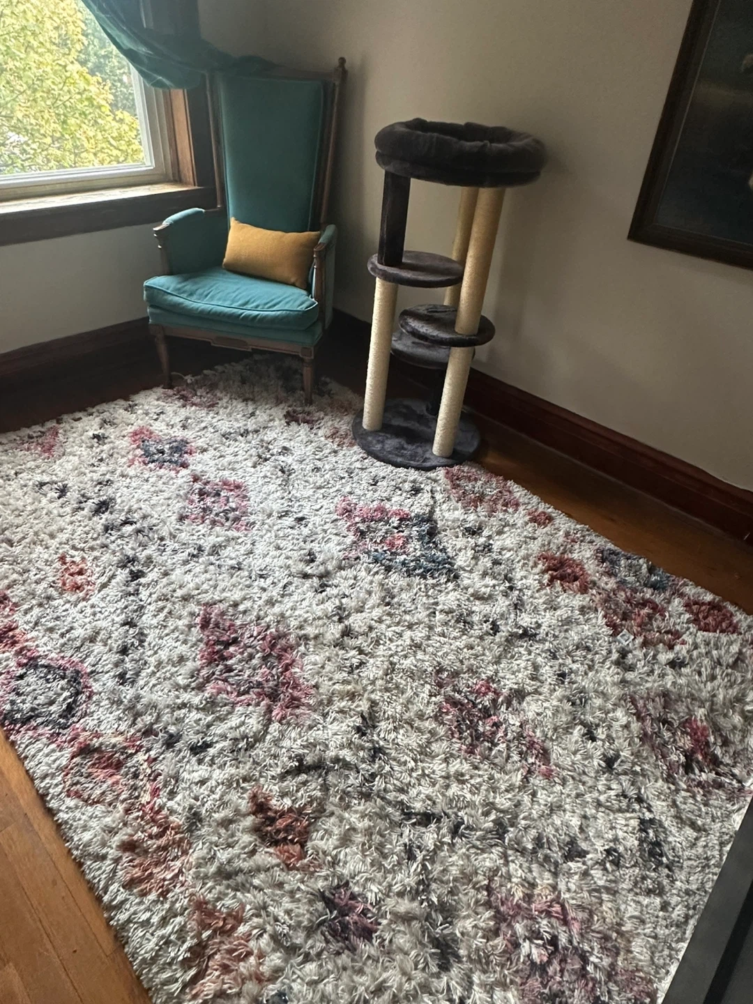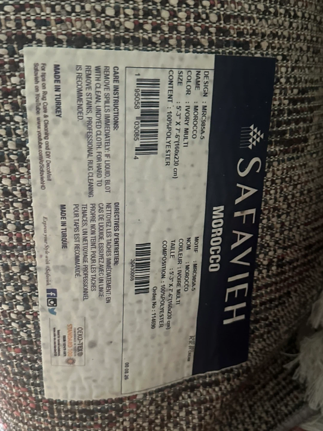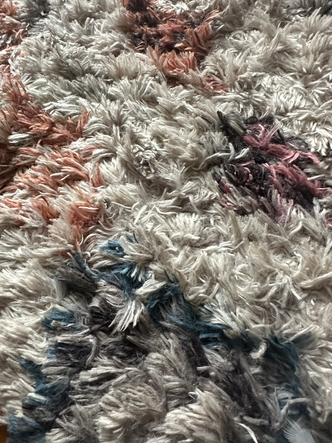 20Selling a Safavieh Morocco area rug in ivory multi color! Its size is 5'3" x 7'6" (160x220 cm) . The rug has a soft, shaggy texture and would be perfect for adding some warmth and style to any room. Would be cute in a nursery or bohemian bedroom. I bought this for my spare bedroom two years ago so there has never been furniture on it, and it has rarely been walked on. It is in excellent condition. The most prominent colors are pink, blue, orange, and black.