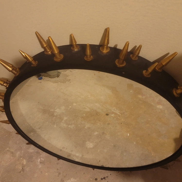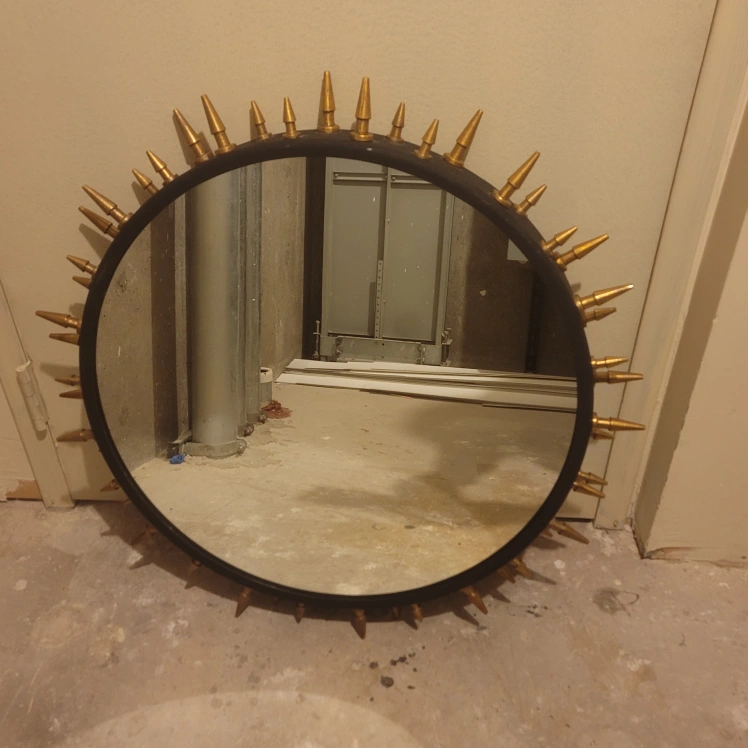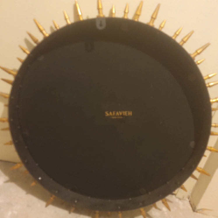 Selling a round mirror with unique spike accents. The brand is Safavieh. It's a stylish piece to add some edge to your decor!