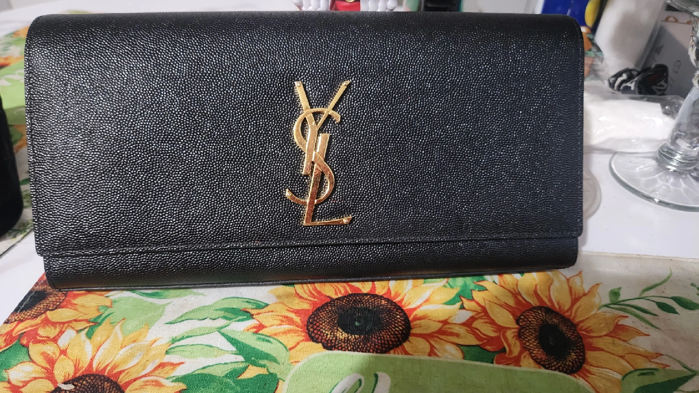 Selling a gently used Saint Laurent wallet in black leather. Features the iconic YSL logo in gold. It's in great condition!