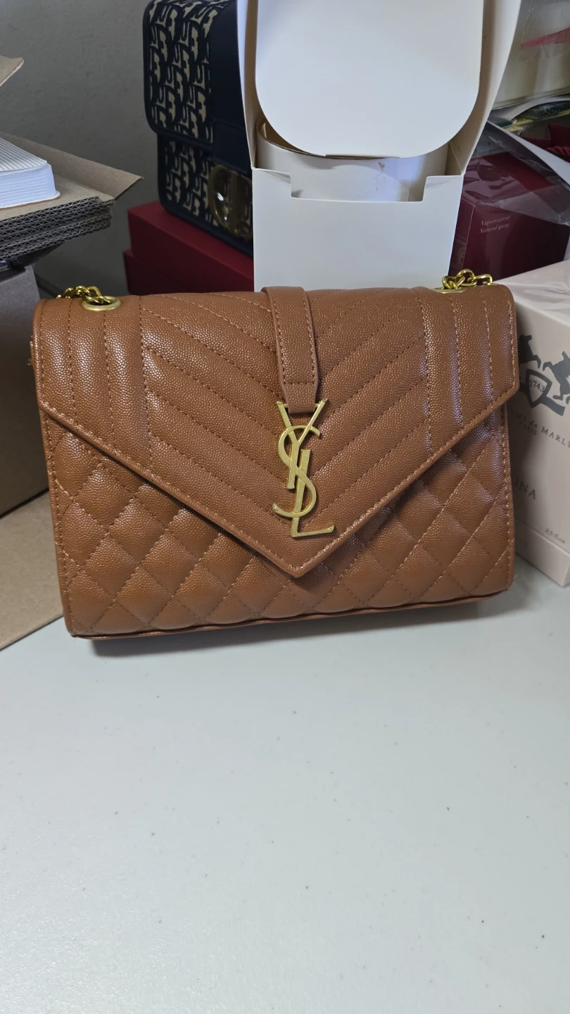 65Here's a stylish brown leather shoulder bag from Saint Laurent! It comes with its original box. The bag is in great condition and ready for a new home