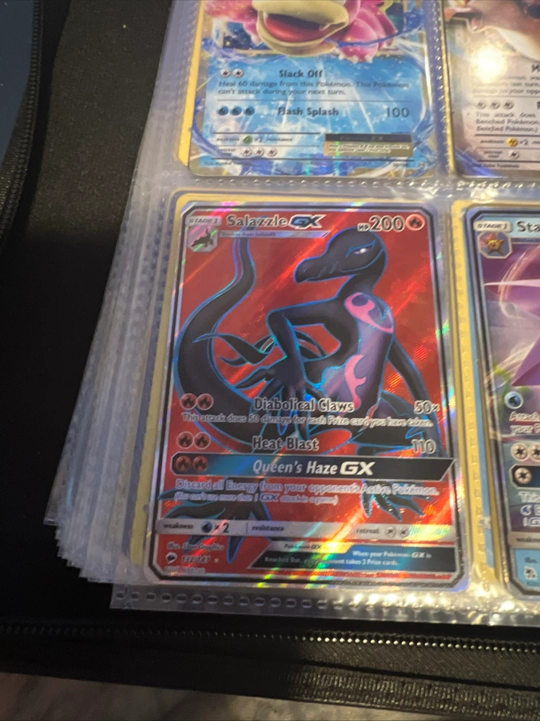 75Selling a Salazzle GX Pokemon card. It has the attacks Diabolical Claws and Heat Blast, and Queen's Haze GX! Great for any collector