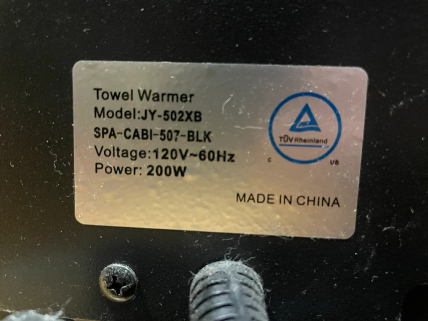 I'm selling a Salon Sundry towel warmer, model JY-502XB. It's black and in great condition! It's designed for 120V~60Hz power and uses 200W. Perfect for keeping your towels warm and cozy