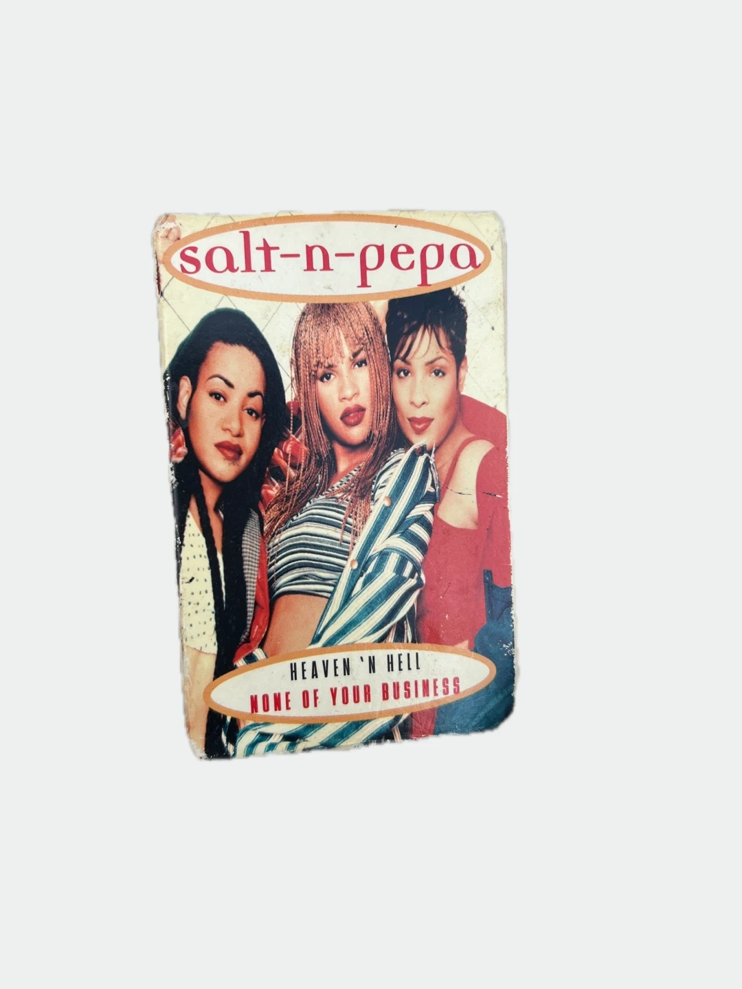 60Selling a Salt-N-Pepa cassette titled Heaven 'N Hell None of Your Business. It's a great addition to any 90s music collection!