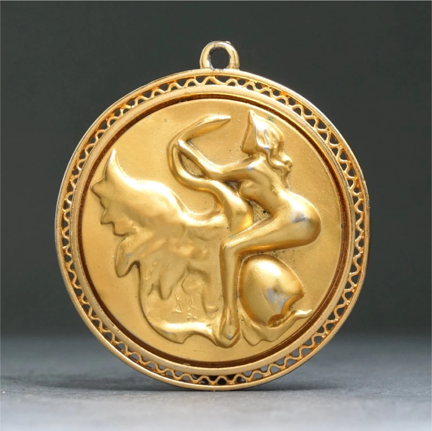 Selling a beautiful gold-tone medallion depicting the image of Leda and the Swan, an original Salvador Dali sculpture. It was struck exclusively for Silver Creations, Ltd. The medallion bears registration number 1933. Comes with the original pouch and certificate of authenticity