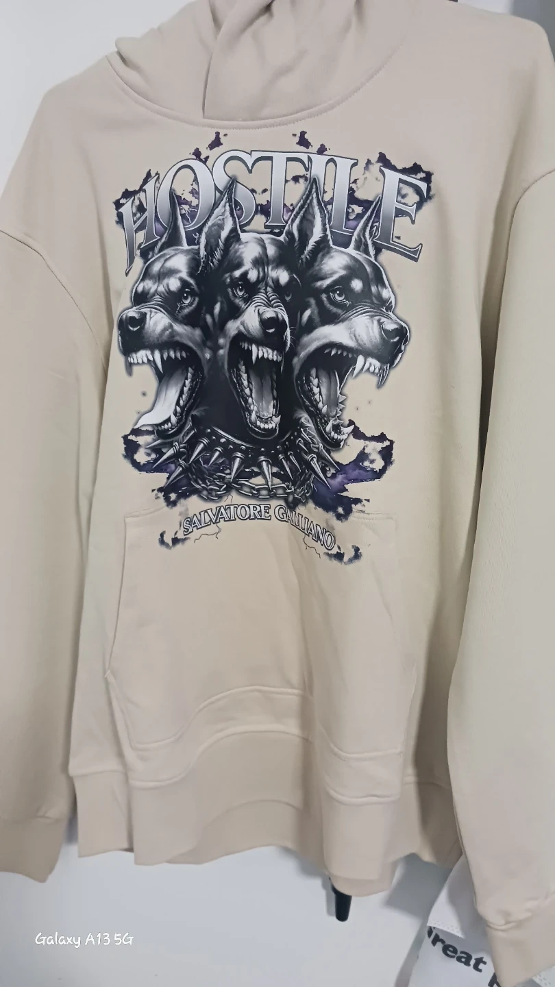 73Here's a cool Salvatore Galliano hoodie! It features a unique design with a three-headed dog graphic. The hoodie is a light beige color and has a comfortable fit. Perfect for adding a statement piece to your wardrobe! (I'm open for any offers but won't go below 45-50$)