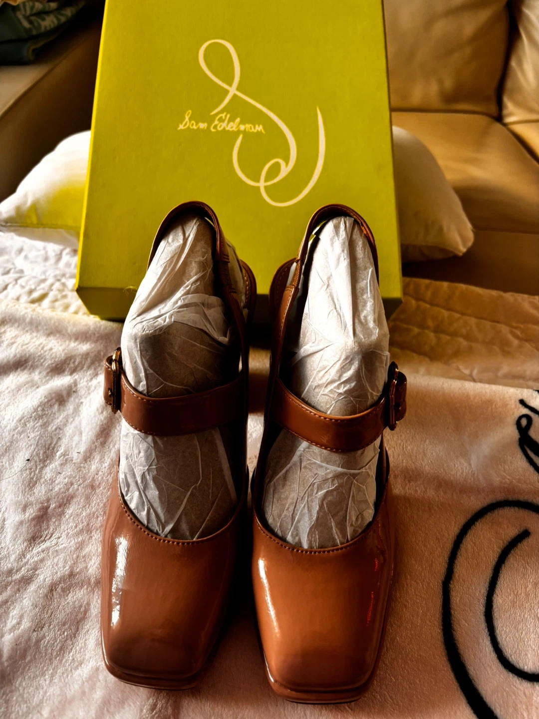 65These adorable Sam Edelman Mary Jane heels in light pink/mauve patent leather are new and come with the original box! They are a size 9.5 and feature a buckle strap. Perfect for adding a touch of vintage charm to any outfit!