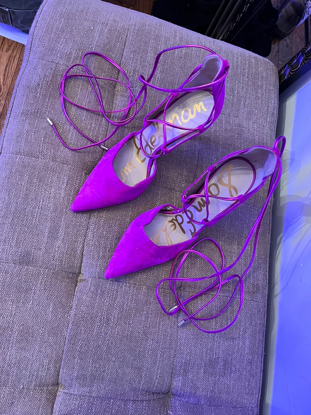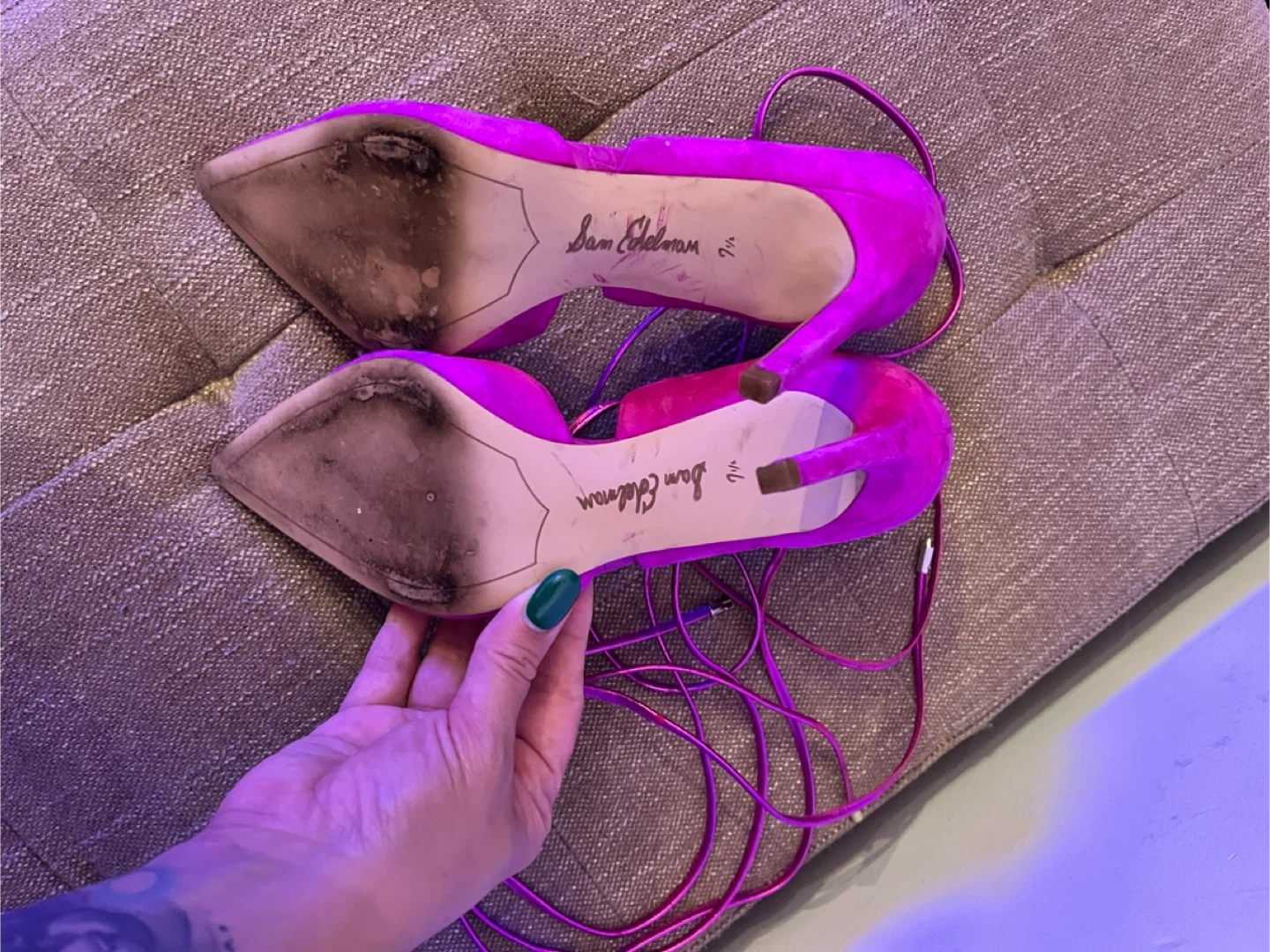 Lightly used. Heel is barely used. I side has slight peeling with some cleaning needed on the fabric outside. Sam Edelman. Size 7.5. First come, first serve. Selling for $3.00.