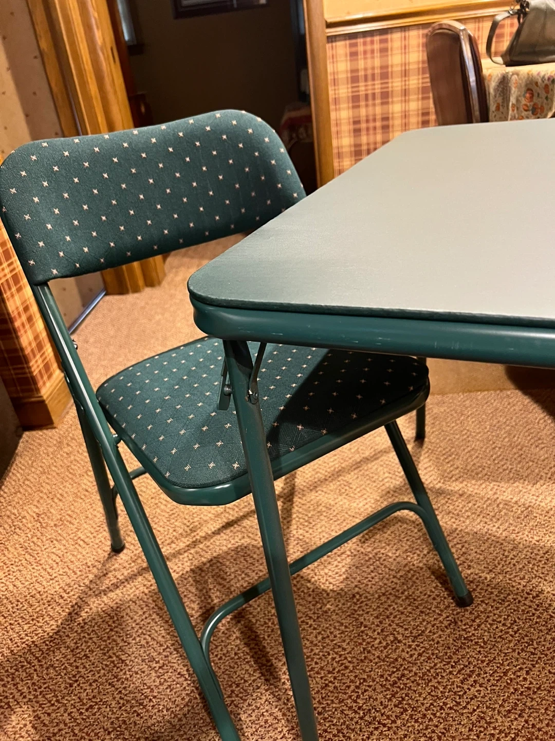 257Stored-never used 5pc. Set Pine Green Folding Table w/4 Upholstered Chairs. Perfect for an extra table for the holidays!!!! π¦ π