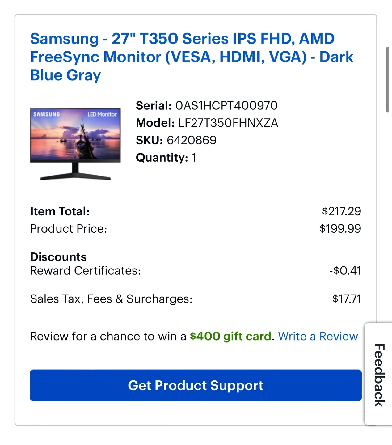 2127" Samsung T350 Series IPS FHD, AMD FreeSync Monitor (VESA, HDMI, VGA) - Dark Blue Gray. Comes with power cord.