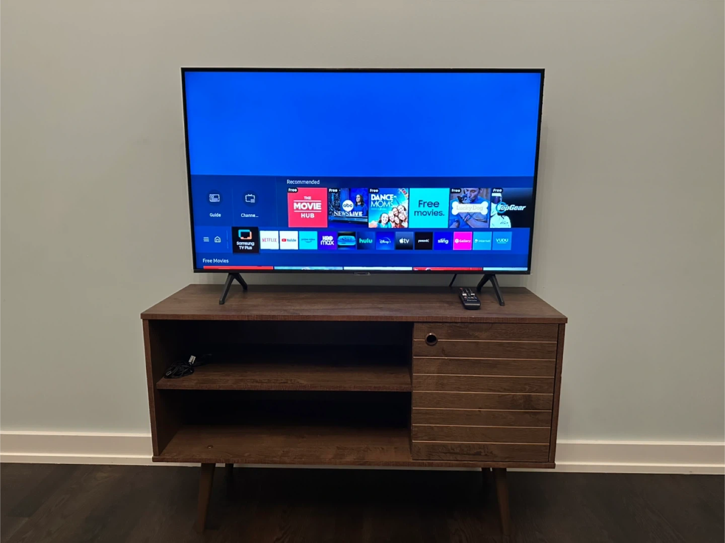 Selling a Samsung 43 inch Crystal UHD Smart TV. It has great picture quality. Comes with a matching wooden TV stand. The dimensions of the stand are 25 3/4" x 43" x 14 1/8".