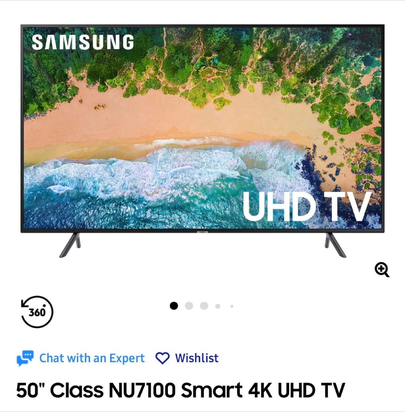18Selling a Samsung 50" Class NU7100 Smart 4K UHD TV. It optimizes content for 4K and delivers a vibrant picture with PurColor. Enjoy smooth action in fast scenes with Motion Rate 120 and incredible high dynamic range.