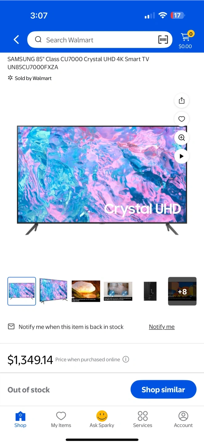 Selling a Samsung 85" Class CU7000 Crystal UHD 4K Smart TV. Originally purchased for $1500 a few months ago. Screen is broken and unfortunately I cannot fix it.