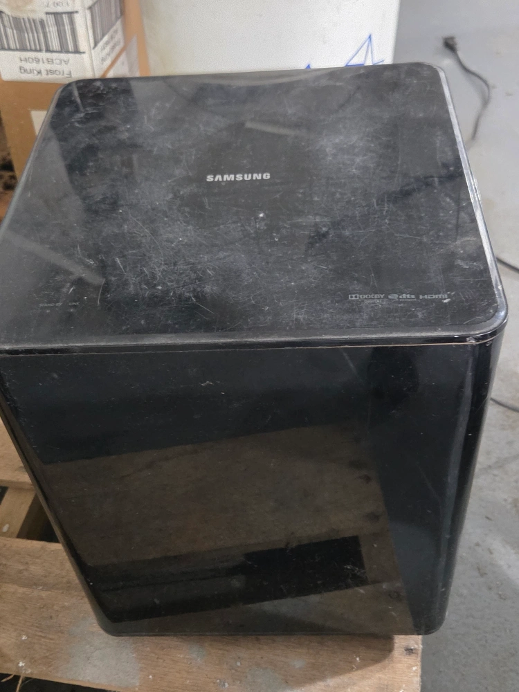 Selling a Samsung subwoofer! It's black and has Dolby Digital and DTS. It's in used condition.