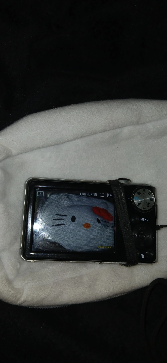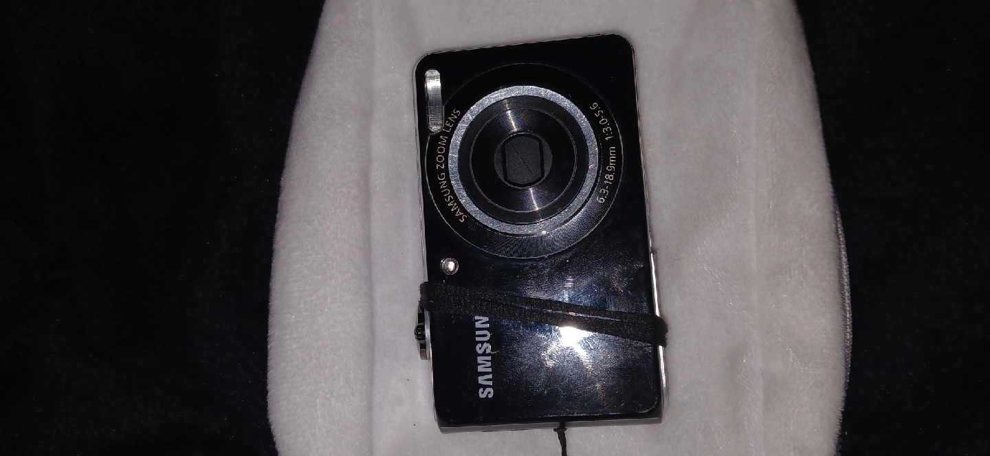 Sleek black samsung pl100 with a dual face screen with a convenient strap. Perfect for capturing moments on the go and with friends. The camera battery door does not close. I just use a hair tie to keep it close, and it works, but everything else works fine. The last 3/4 images are ones I took with the camera Includes *camera *camera strap *battery *camera charger *sd adapter for microsd *micro sd card