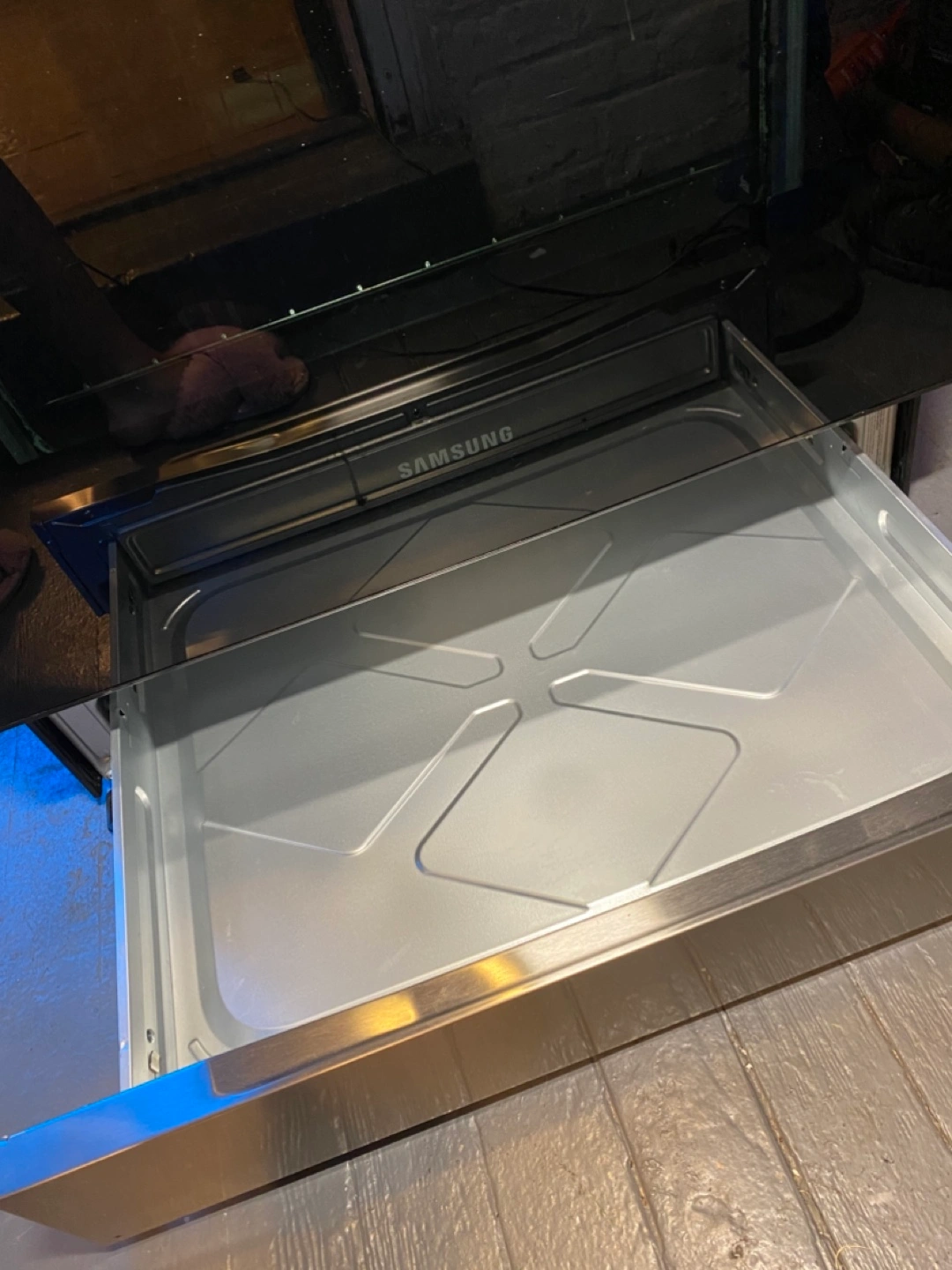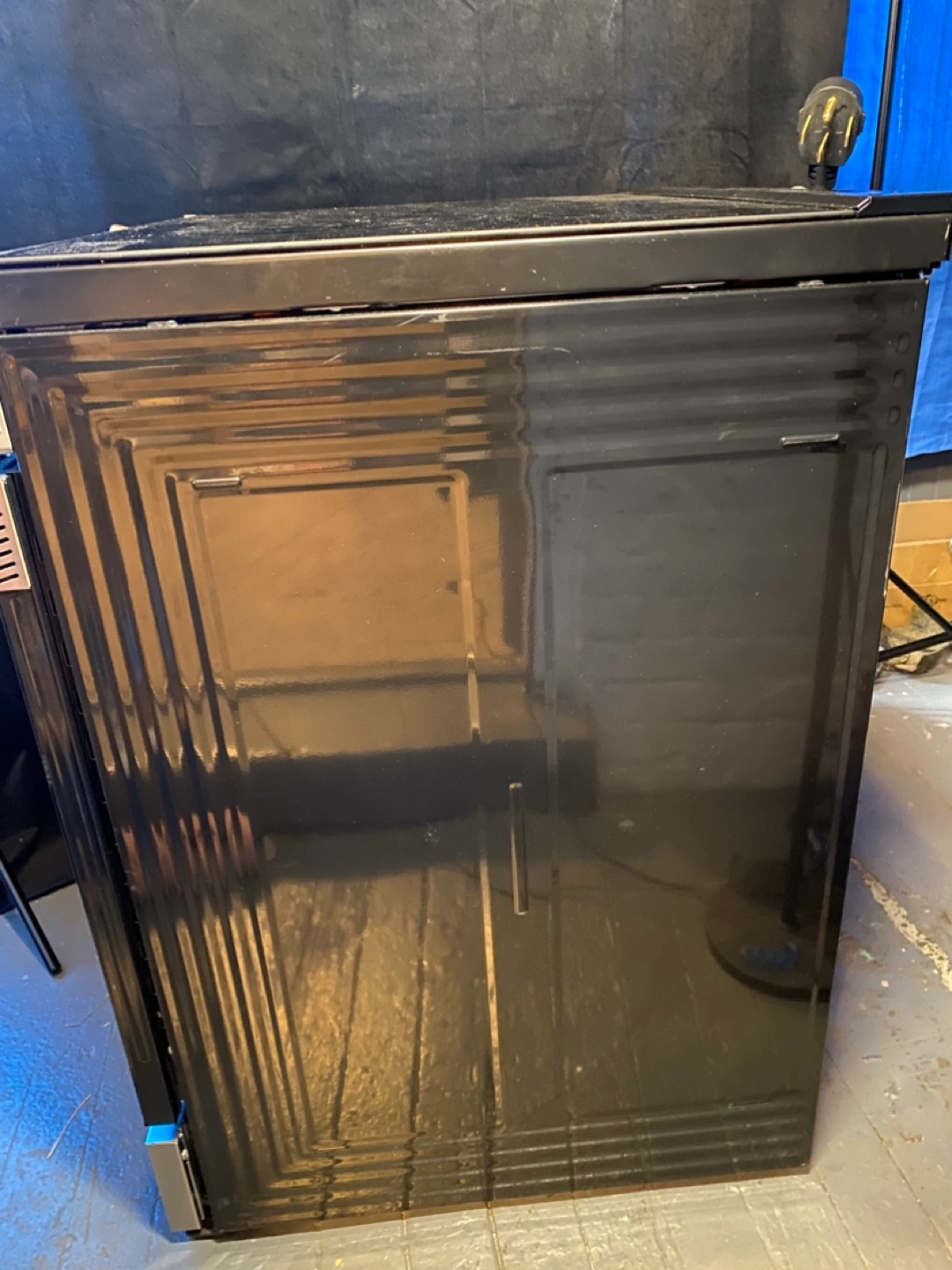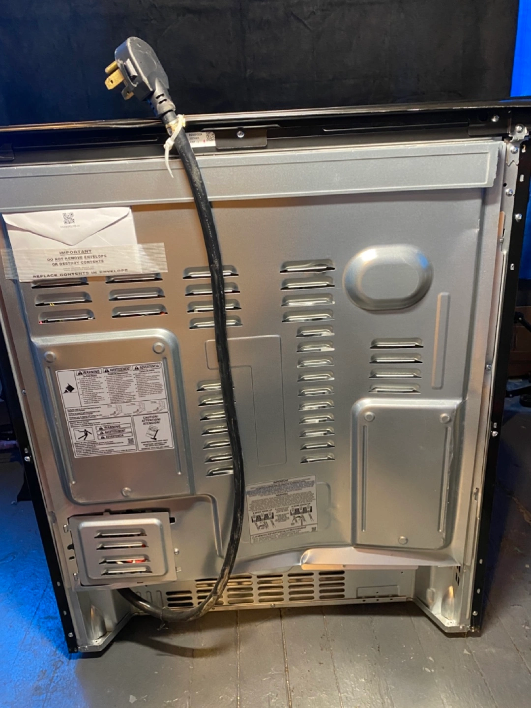 Selling a Samsung electric range. It has a black cooktop and a stainless steel finish. The back is a bit dented in and the left knob is loose but still turns. Knob covers for free!