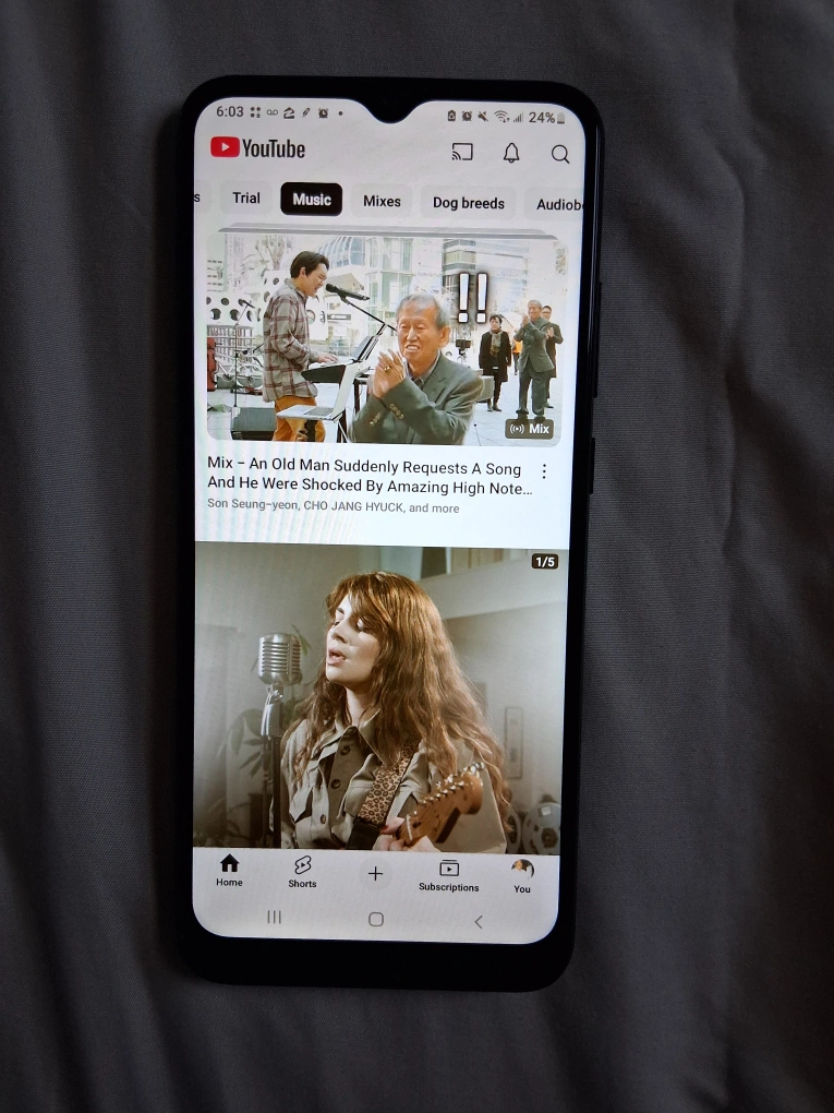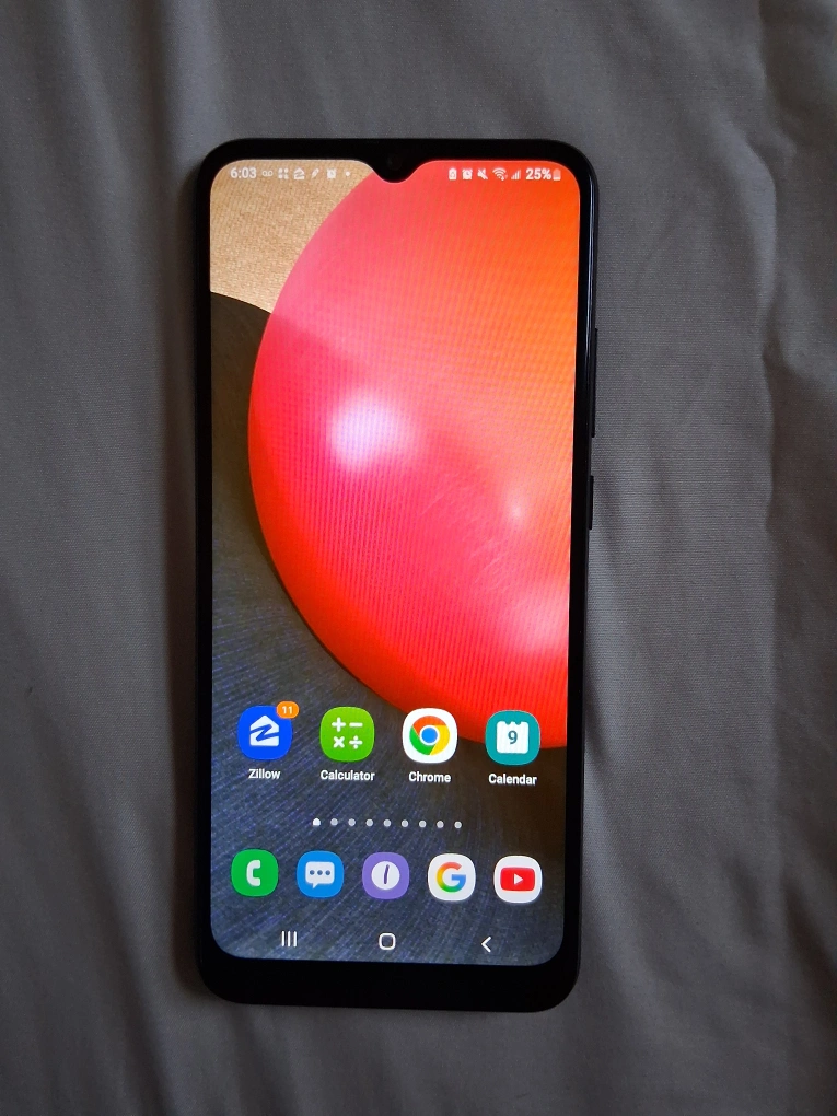 The phone is black. The phone has a large screen and camera array. You could use it for watching videos. Overall, it is in good condition.