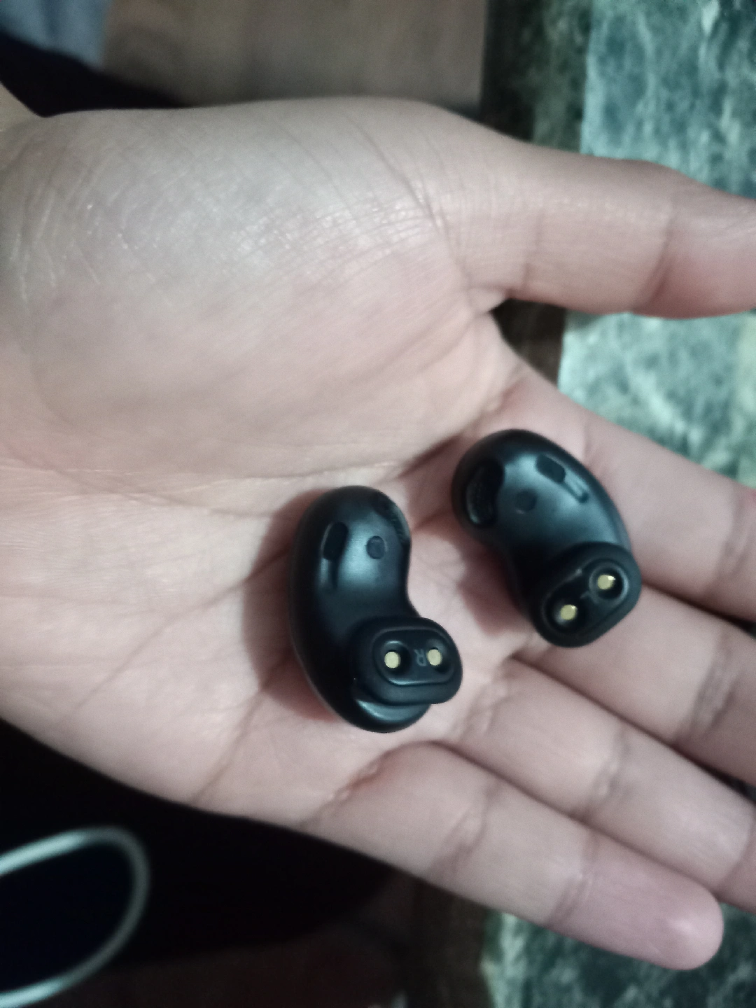 Selling a pair of used Samsung Galaxy Buds Live in black. yes ,they have minor scratches. unique shape earbuds