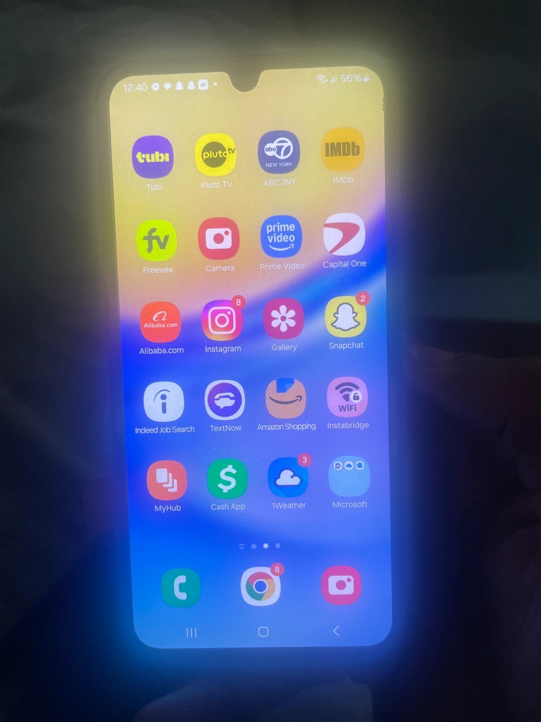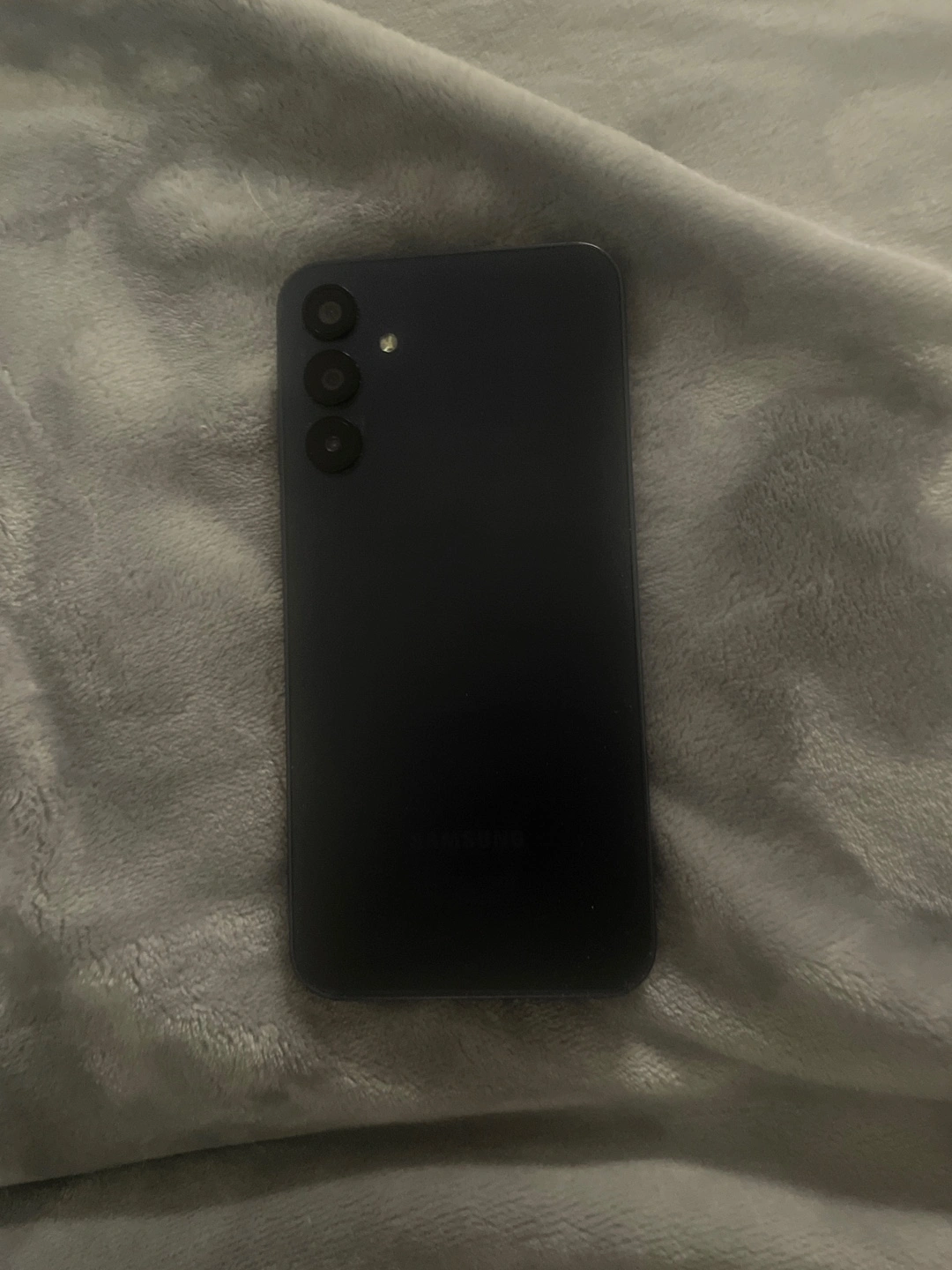 Dark colored phone. Features a multi-camera setup. Perfect for keeping in touch with family and friends.