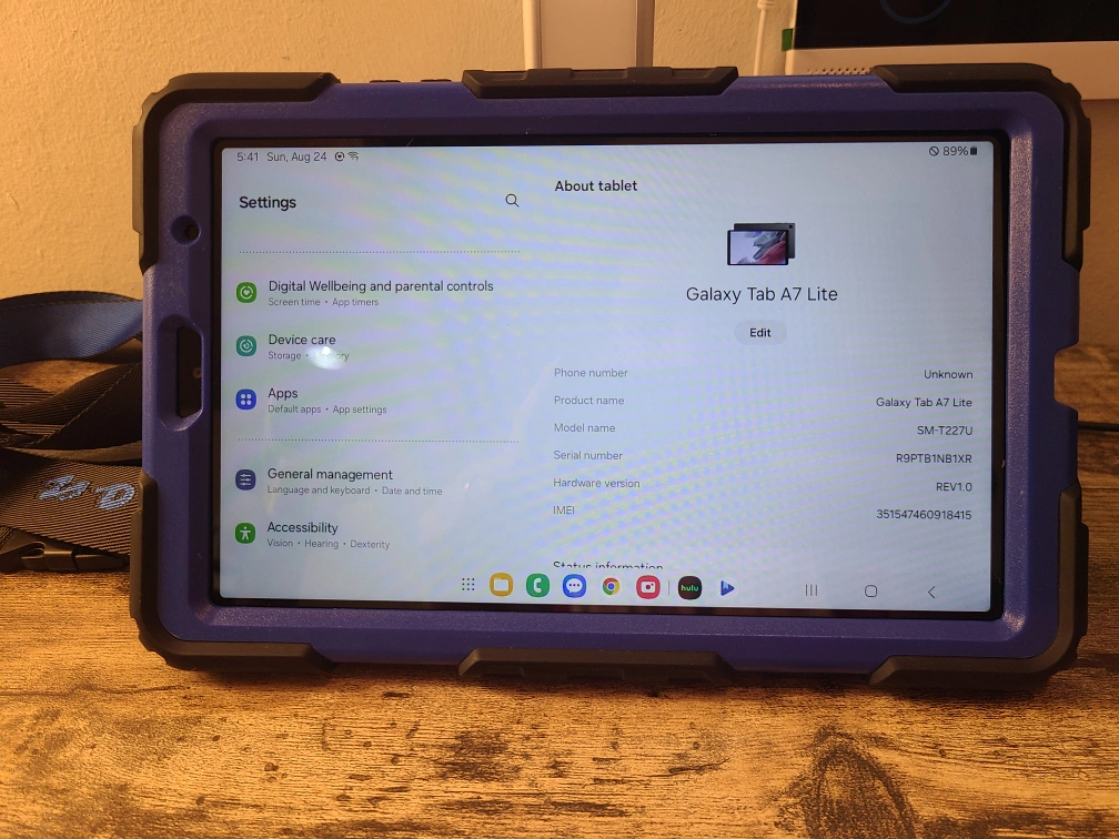 Selling a Samsung Galaxy Tab A7 Lite. It's in great condition and ready for a new home! The model number is SM-T227U. include a case and wire