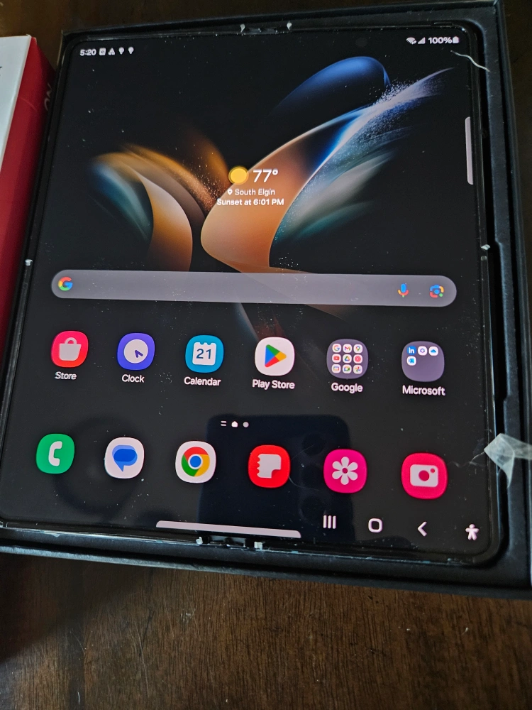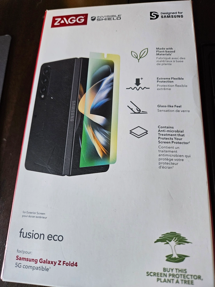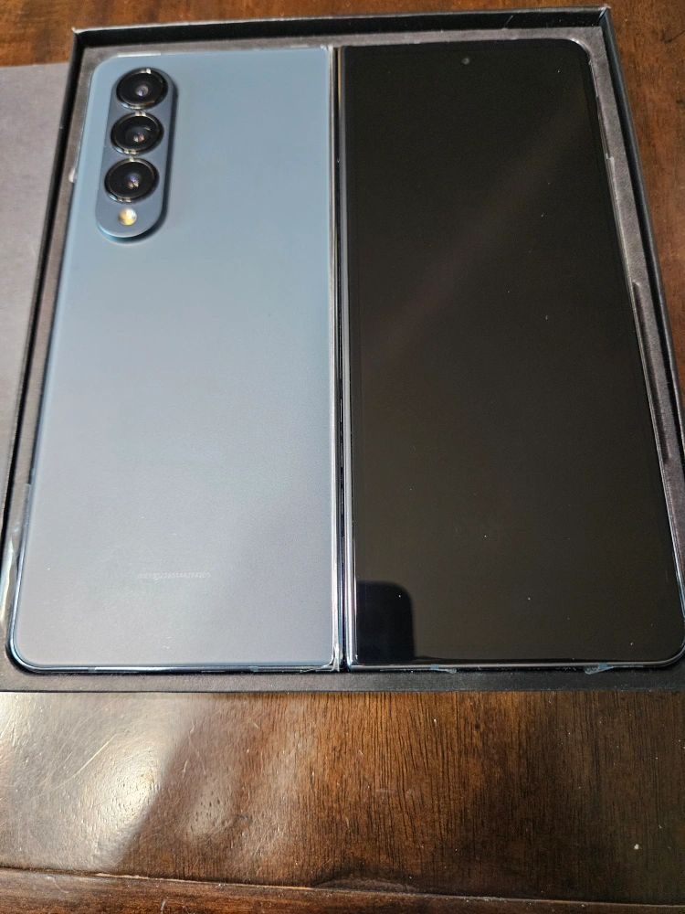 Selling a Samsung Galaxy Z Fold4 in Graygreen with 512GB of storage. It comes with a ZAGG Invisible Shield Fusion Eco screen protector for the exterior screen. Also included is the original box and charger This was refurbished by Samsung never been used since and is unlocked for any provider along with mfg warranty.