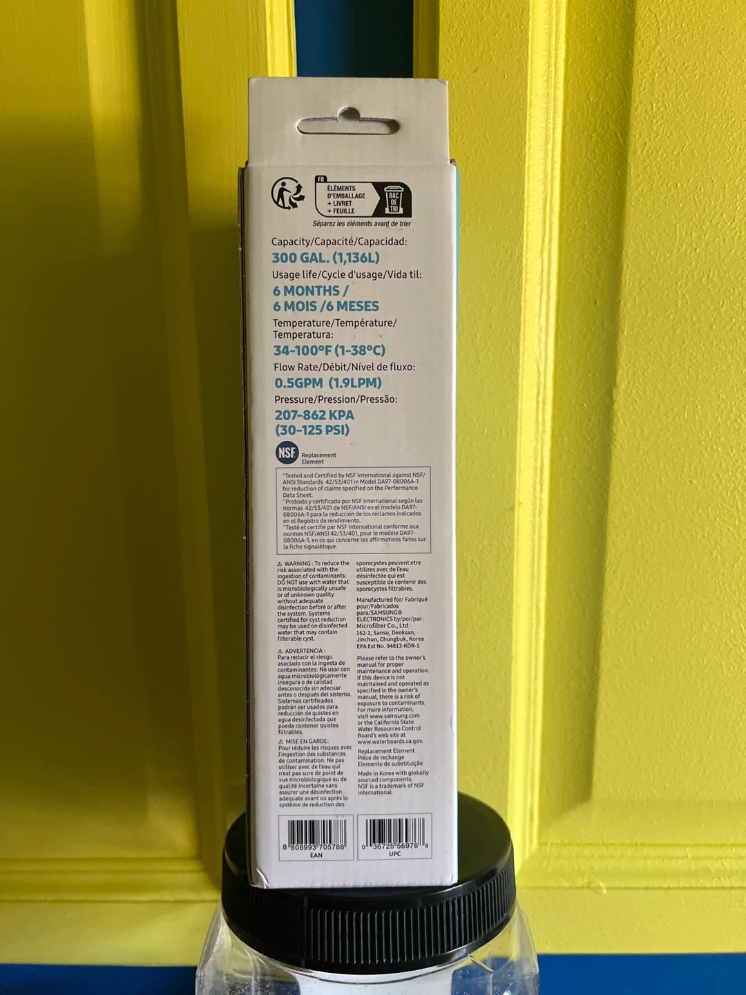 119Selling a brand new Samsung HAF-CIN/EXP ice and water refrigerator filter in its original packaging! This filter is designed to provide instant crystal clear fresh water for your Samsung refrigerator. It's easy to install with a simple slide and twist. It is a genuine water filter and reduces contaminants such as lead, mercury, and benzene. It lasts for 6 months or 300 gallons.