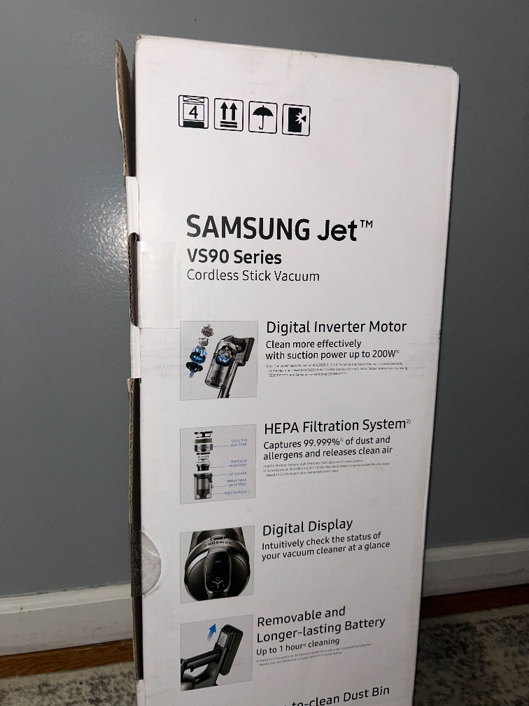 Selling a brand new, in-box Samsung Jet VS90 Series Cordless Stick Vacuum! It's never been used and comes with all original components and packaging. Perfect for keeping your home clean and tidy with powerful suction and cordless convenience