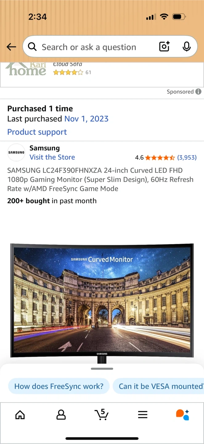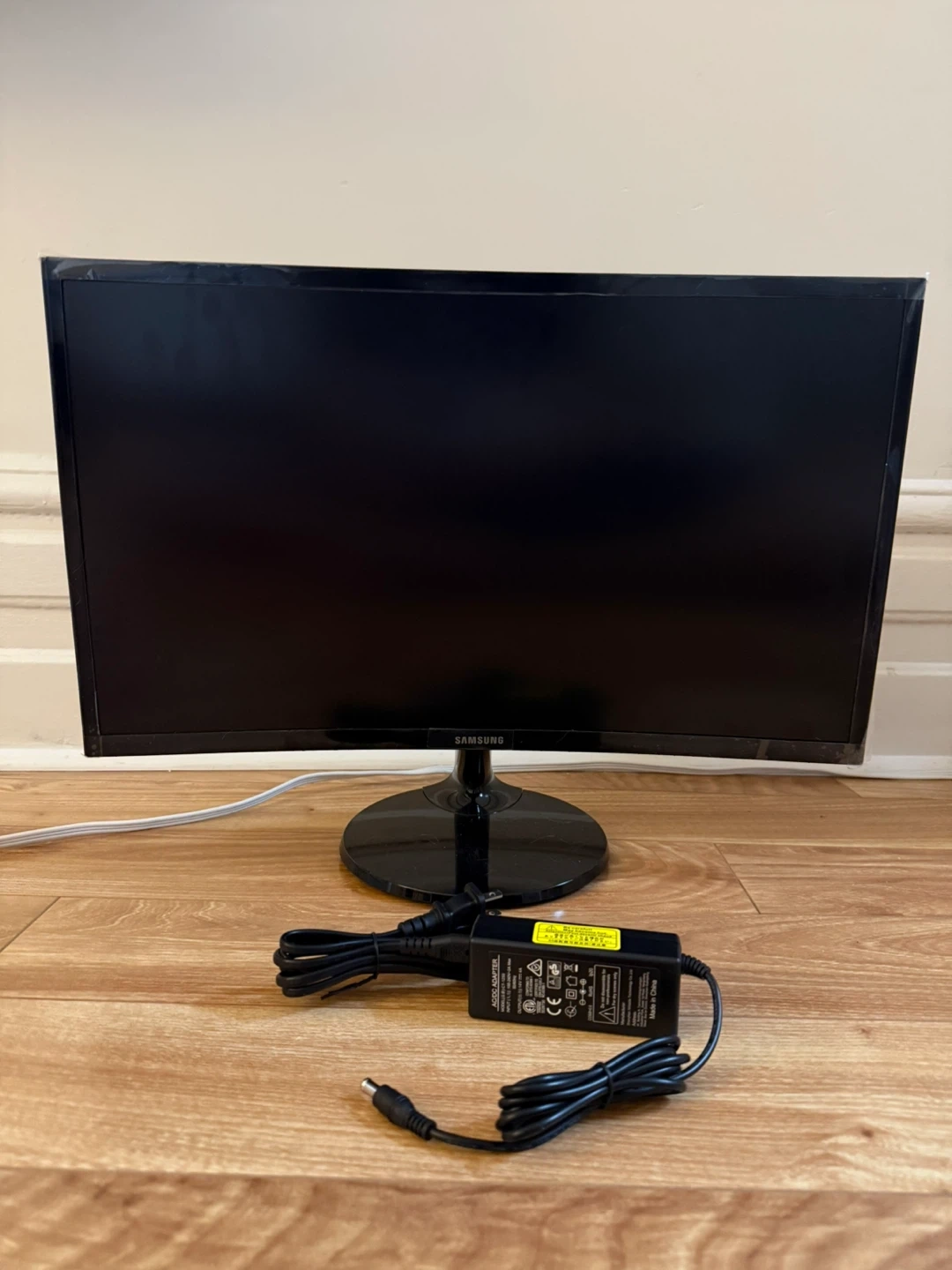 Selling a Samsung 24-inch curved LED FHD gaming monitor! It's in great condition and comes with the power adapter. Key features include: - Super Slim Design - 60Hz Refresh Rate - AMD FreeSync Game Mode