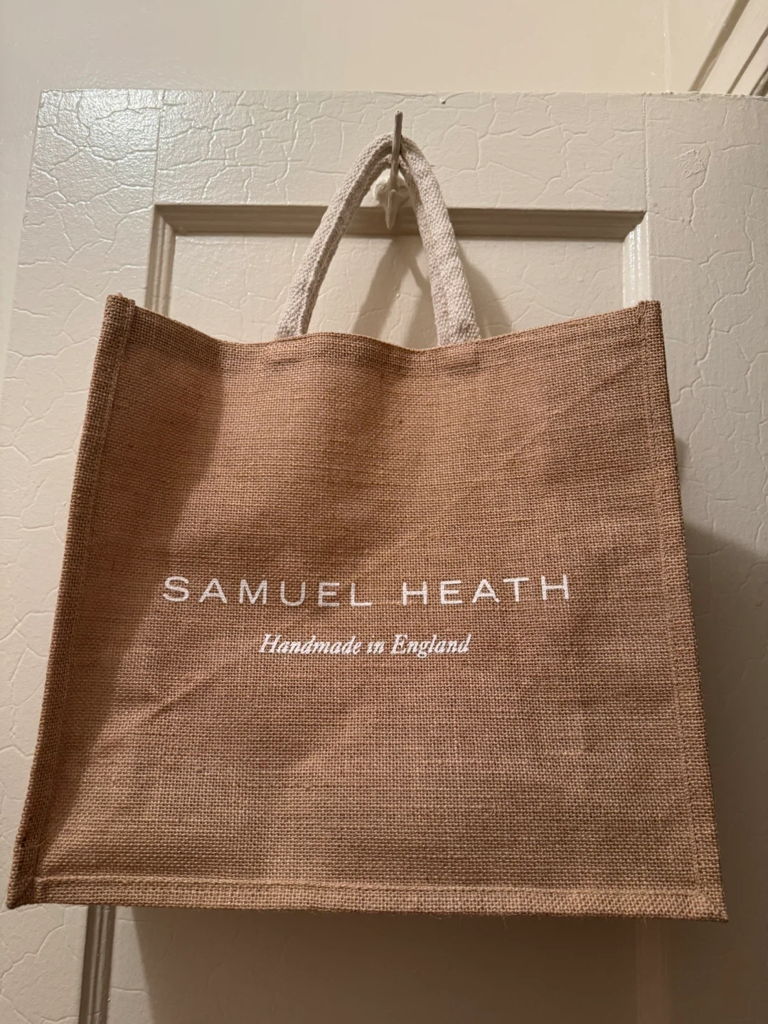 77Selling a Samuel Heath tote bag, handmade in England! It's a beautiful, sturdy bag perfect for shopping or everyday use. The material is a natural, earthy tone that goes with everything