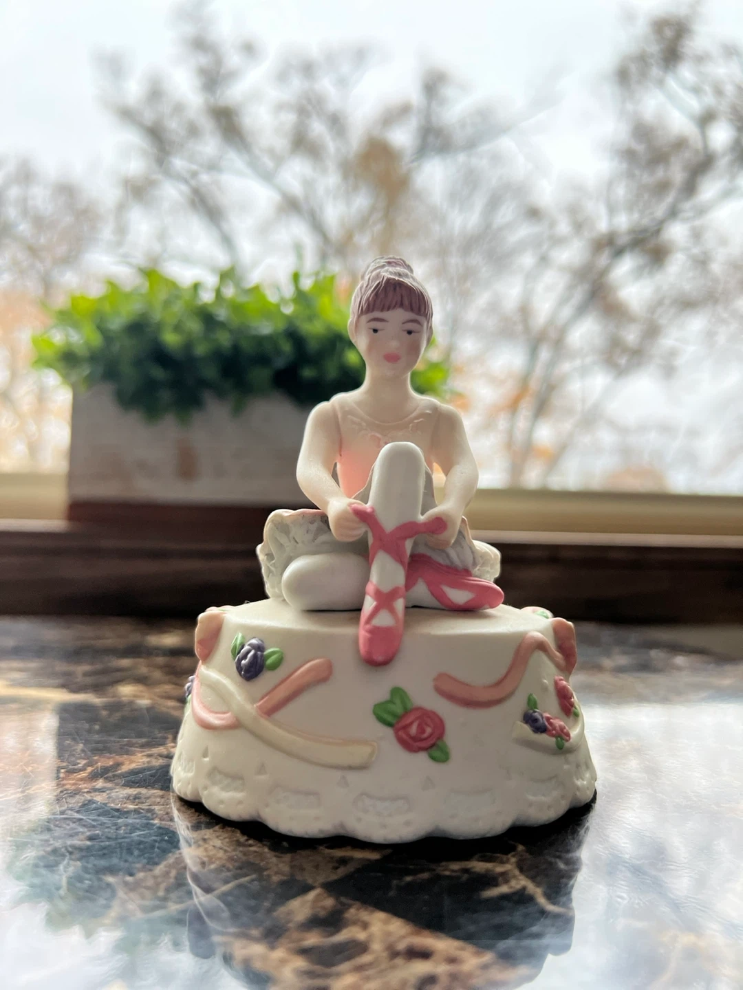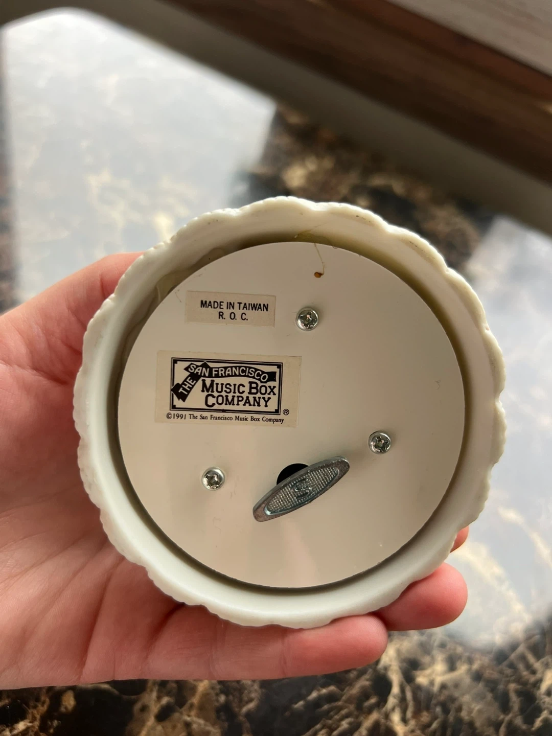 160This is a charming ballerina music box from The San Francisco Music Box Company! It's in great condition and ready to bring a touch of whimsy to your home. The music box is made in Taiwan, R.O.C. and is marked with the copyright year 1991.