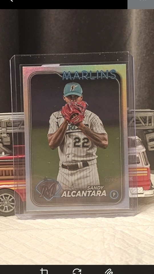 Here's a Sandy Alcantara baseball card from Topps! It features the Miami Marlins player. Great for any baseball card collector