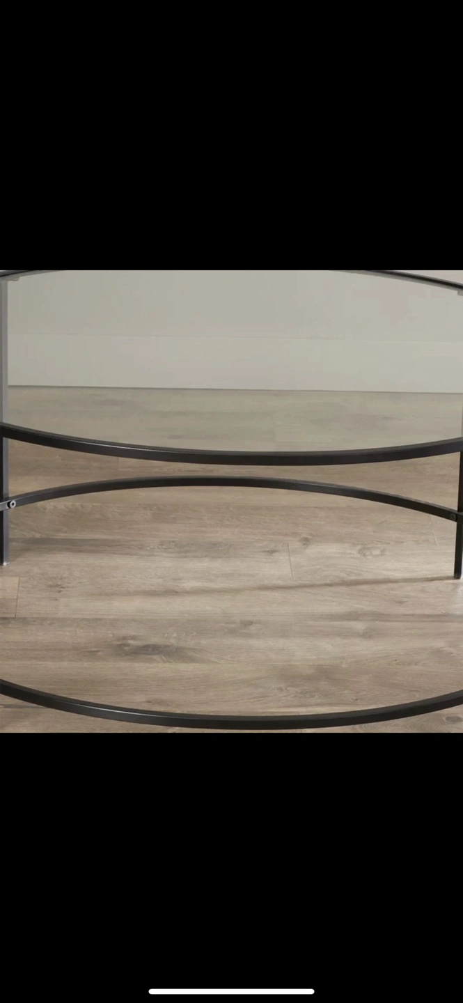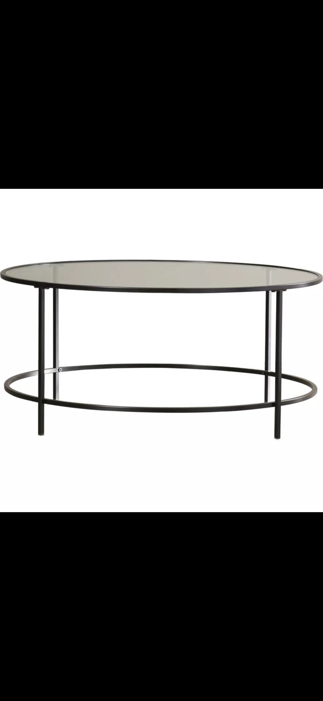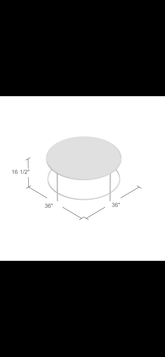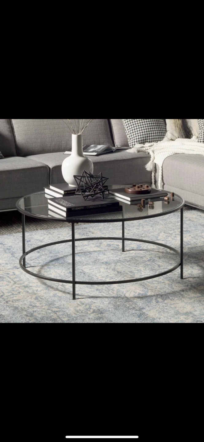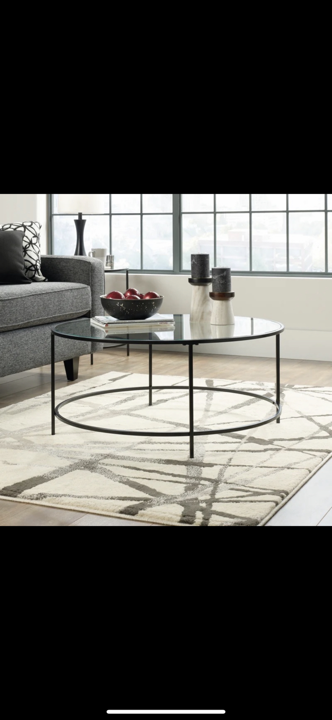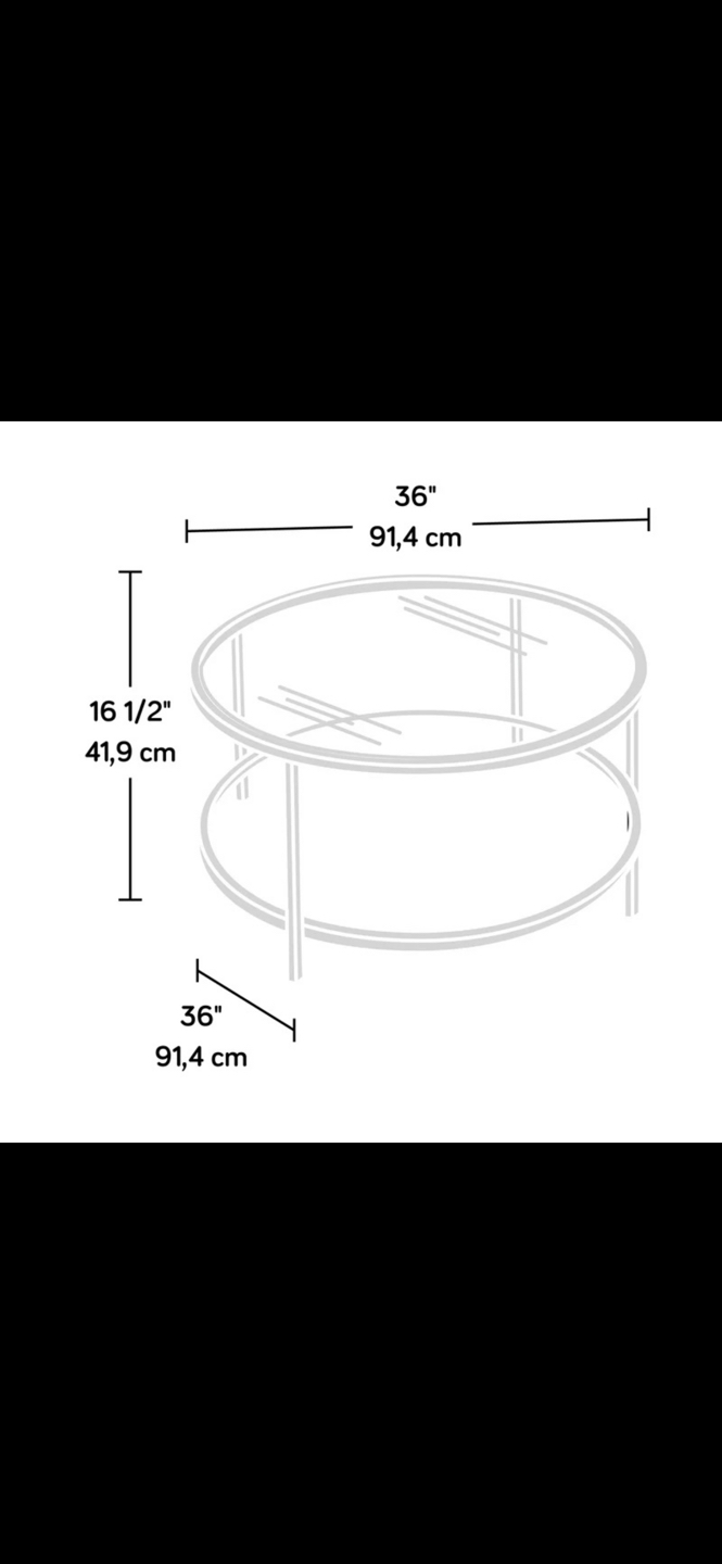 Is the seating ensemble feeling empty? Try a coffee table! Not only do they anchor your space, but they offer room to stage a display and serve up trays of treats when you find yourself entertaining. This one, for example, has a simple round shape, tempered glass top, and four straight legs, creating clean lines that can blend smoothly with the modern and contemporary aesthetic. We recommend wiping with a dry clean cloth to keep clean. This piece requires assembly upon arrival. Sophisticated and cool. This round coffee table from the International Lux collection can add a touch of luxury to any room. This black rimmed table features a safety-tempered glass top for a chic look that looks great as a centerpiece of any room. The metal construction of this round modern coffee table is designed for long lasting durability. Finished on all sides for versatile placement in any room of your home, this coffee table will look polished from every angle. A Satin Black finish makes this table a versatile fit for the living room, bedroom, or den. We hope you like what you see. Sauder designers travel the world and bring back the best and latest in style, finish, and color trends. This inspiring world travel is evident in the cutting-edge and innovative furniture solutions we offer to you! Dimensions: Overall 16.5'' H X 36'' L X 36'' D Overall Product Weight 32.2 lb. Tabletop Thickness 0.125'' Specifications: Pieces Included 1 Top Color Clear Top Material Glass Top Glass Type Tempered Glass Base Material Steel Wheels Included No Integrated Wireless Charging Surface No Weight Capacity 50 lb. Supplier Intended and Approved Use Residential Use Number of Tables Included 1 Plug-In No Storage Included No Removable Tray No