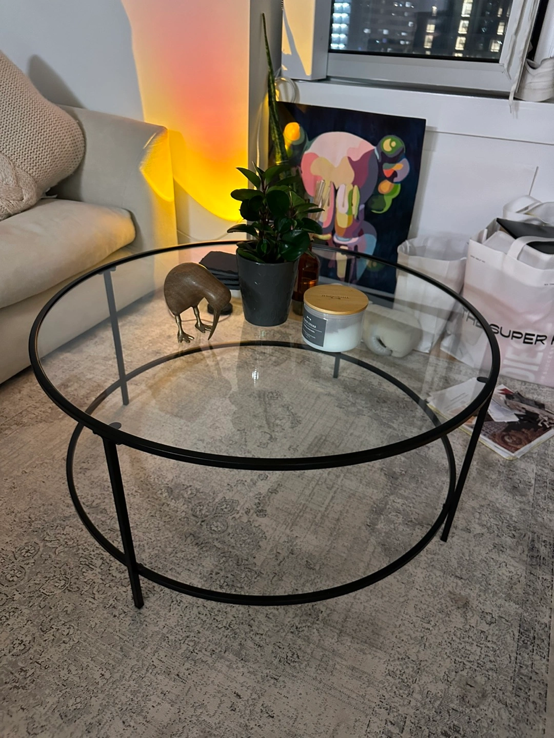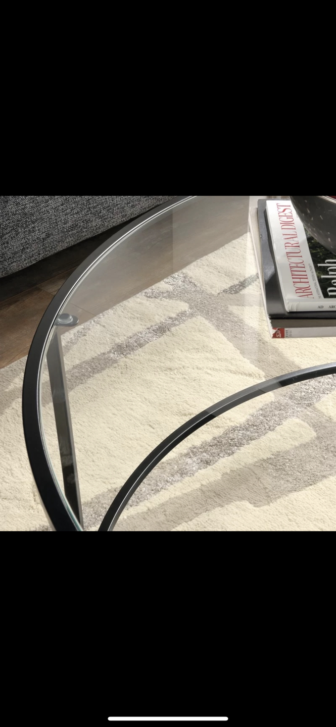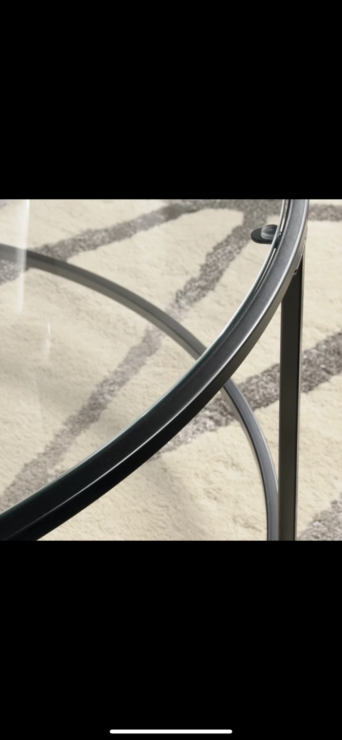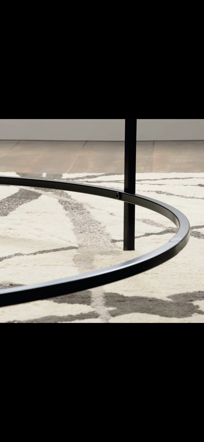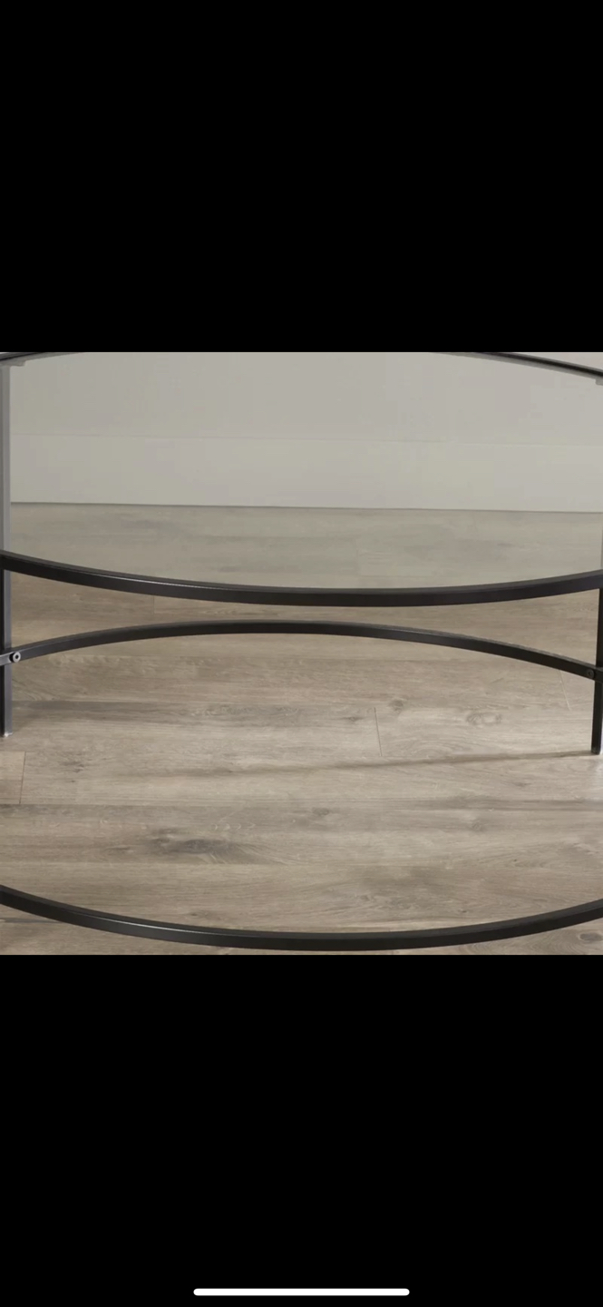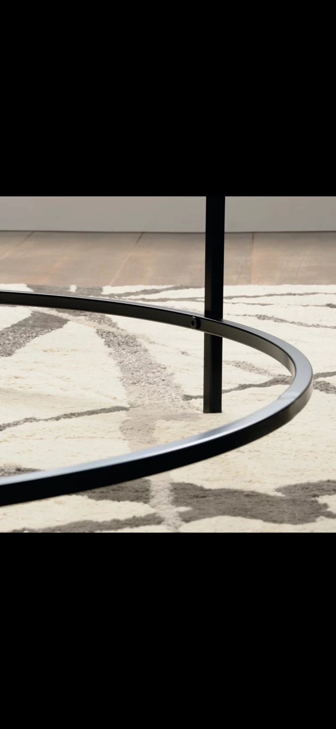 Is the seating ensemble feeling empty? Try a coffee table! Not only do they anchor your space, but they offer room to stage a display and serve up trays of treats when you find yourself entertaining. This one, for example, has a simple round shape, tempered glass top, and four straight legs, creating clean lines that can blend smoothly with the modern and contemporary aesthetic. We recommend wiping with a dry clean cloth to keep clean. This piece requires assembly upon arrival. Sophisticated and cool. This round coffee table from the International Lux collection can add a touch of luxury to any room. This black rimmed table features a safety-tempered glass top for a chic look that looks great as a centerpiece of any room. The metal construction of this round modern coffee table is designed for long lasting durability. Finished on all sides for versatile placement in any room of your home, this coffee table will look polished from every angle. A Satin Black finish makes this table a versatile fit for the living room, bedroom, or den. We hope you like what you see. Sauder designers travel the world and bring back the best and latest in style, finish, and color trends. This inspiring world travel is evident in the cutting-edge and innovative furniture solutions we offer to you! Dimensions: Overall 16.5'' H X 36'' L X 36'' D Overall Product Weight 32.2 lb. Tabletop Thickness 0.125'' Specifications: Pieces Included 1 Top Color Clear Top Material Glass Top Glass Type Tempered Glass Base Material Steel Wheels Included No Integrated Wireless Charging Surface No Weight Capacity 50 lb. Supplier Intended and Approved Use Residential Use Number of Tables Included 1 Plug-In No Storage Included No Removable Tray No