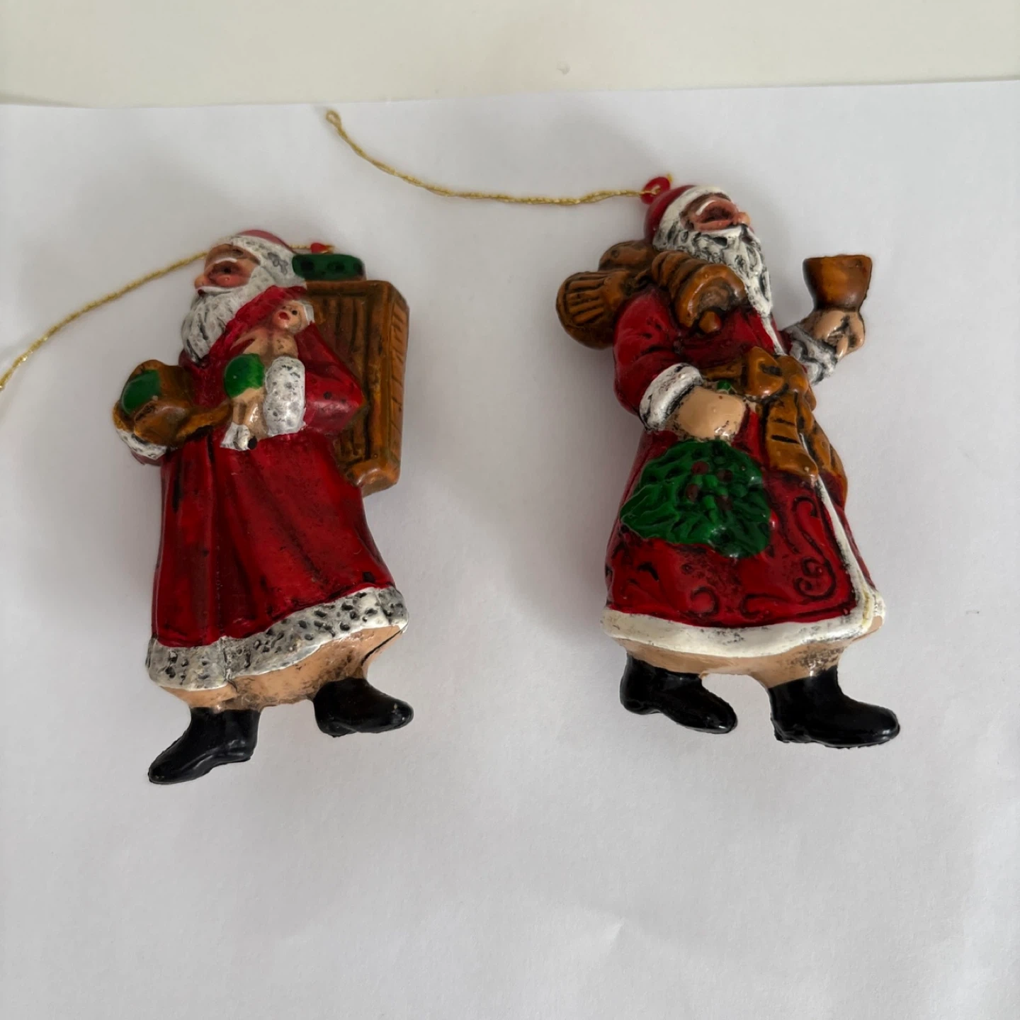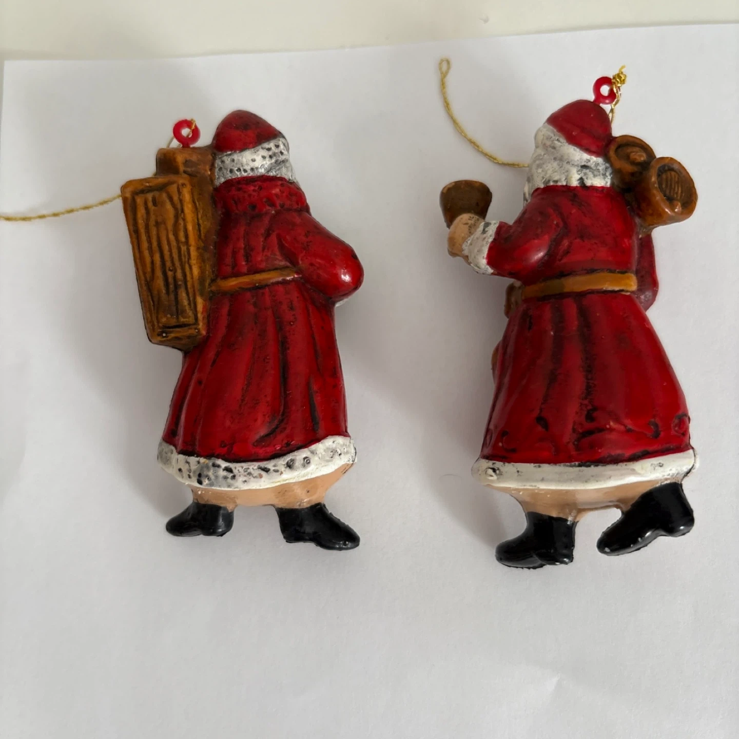 15Here's a set of two charming Santa Claus ornaments ready to add some festive cheer to your holiday decor! They are in good condition and ready to be hung on your tree or displayed around your home