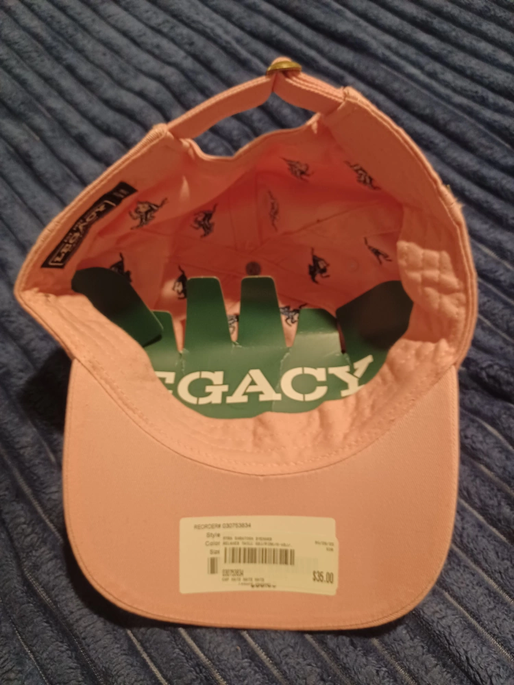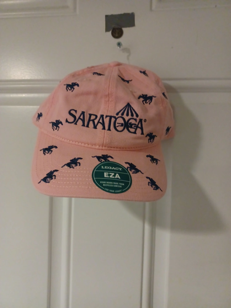 Selling a cute pink baseball cap from Saratoga! It features a fun horse pattern all over. The cap is in great condition and has a Legacy EZA visor board made from recycled content. Originally bought for $35