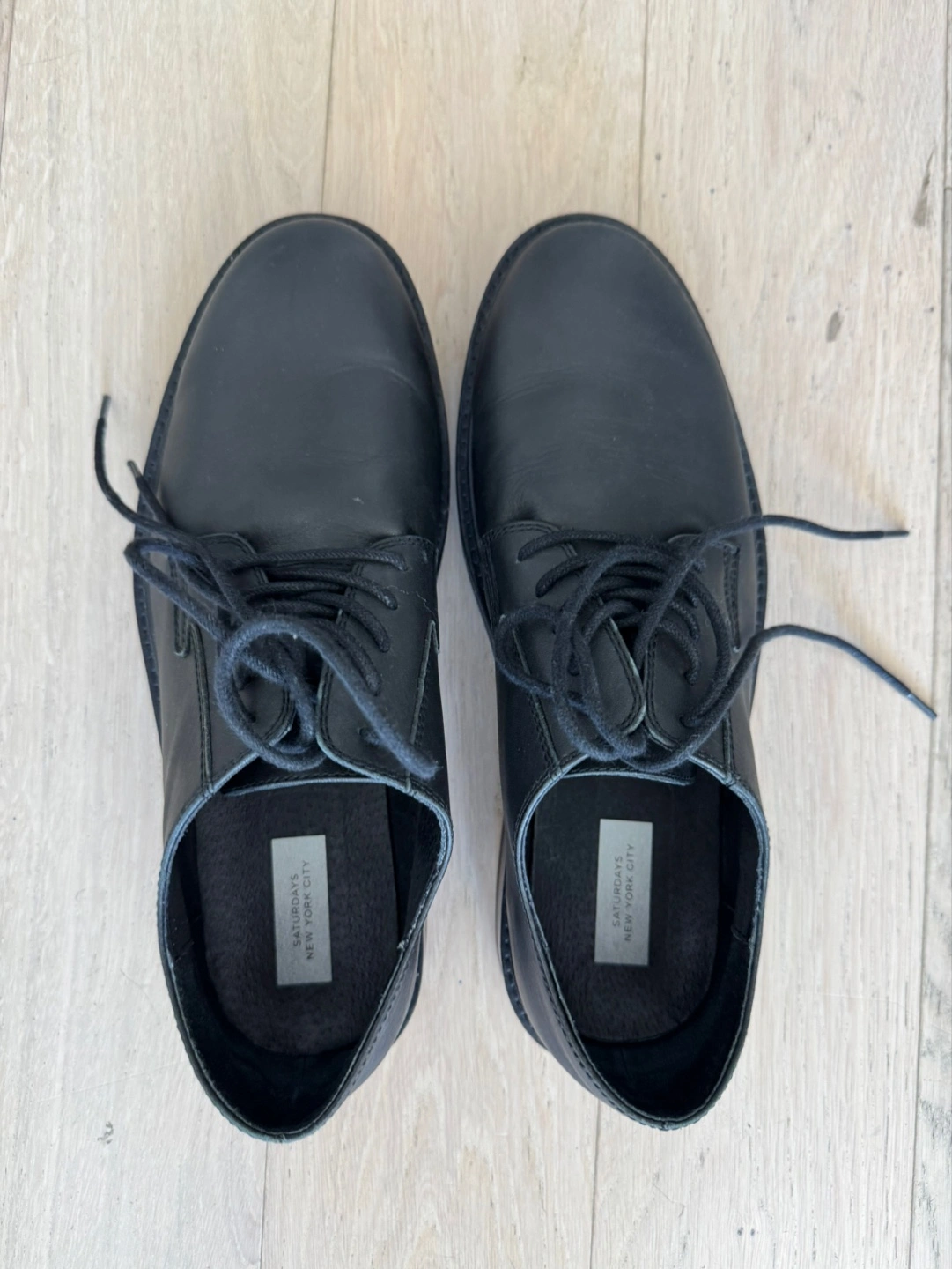 Black leather lace-up shoes. Minimalist design. Great condition.
