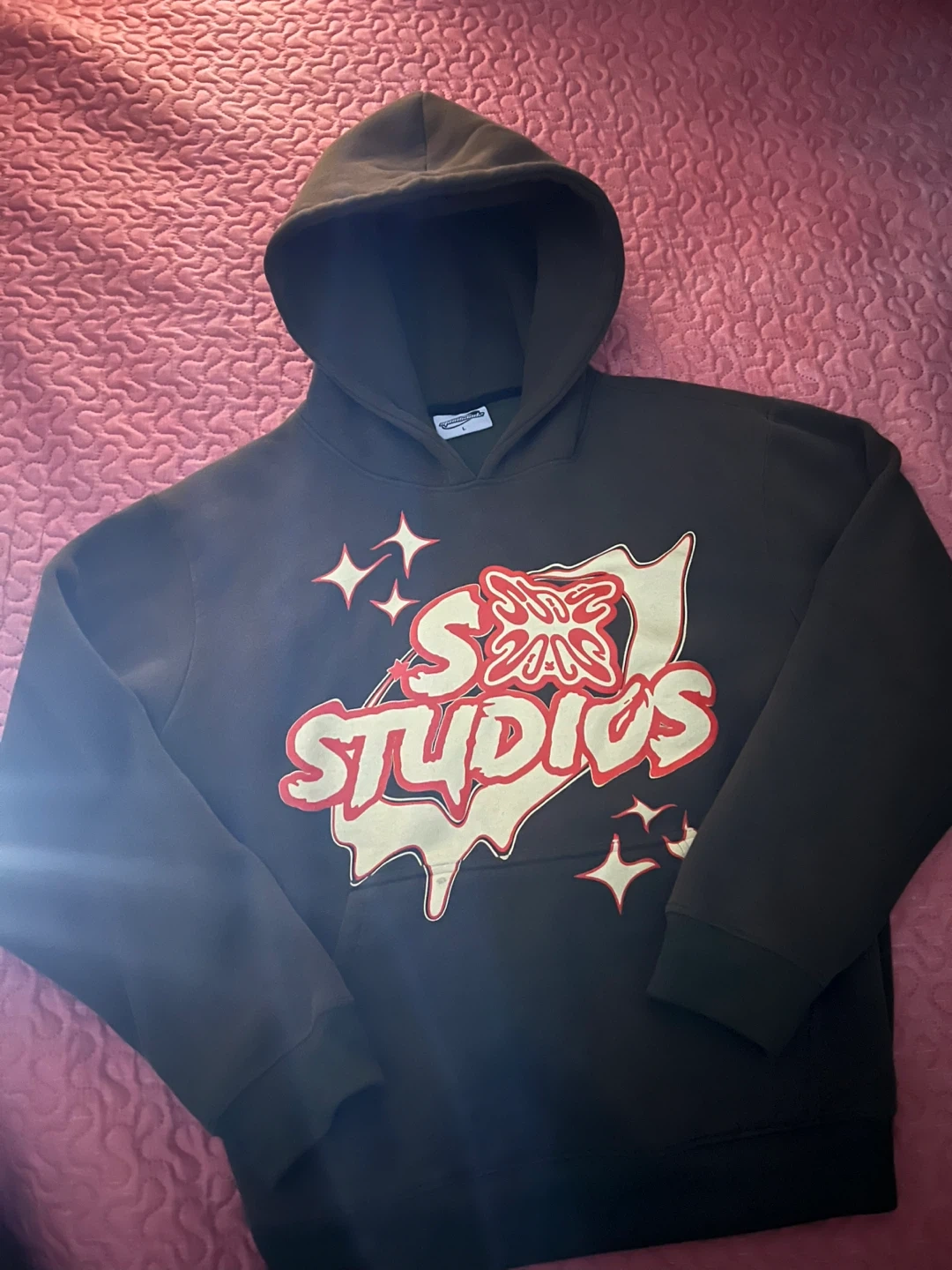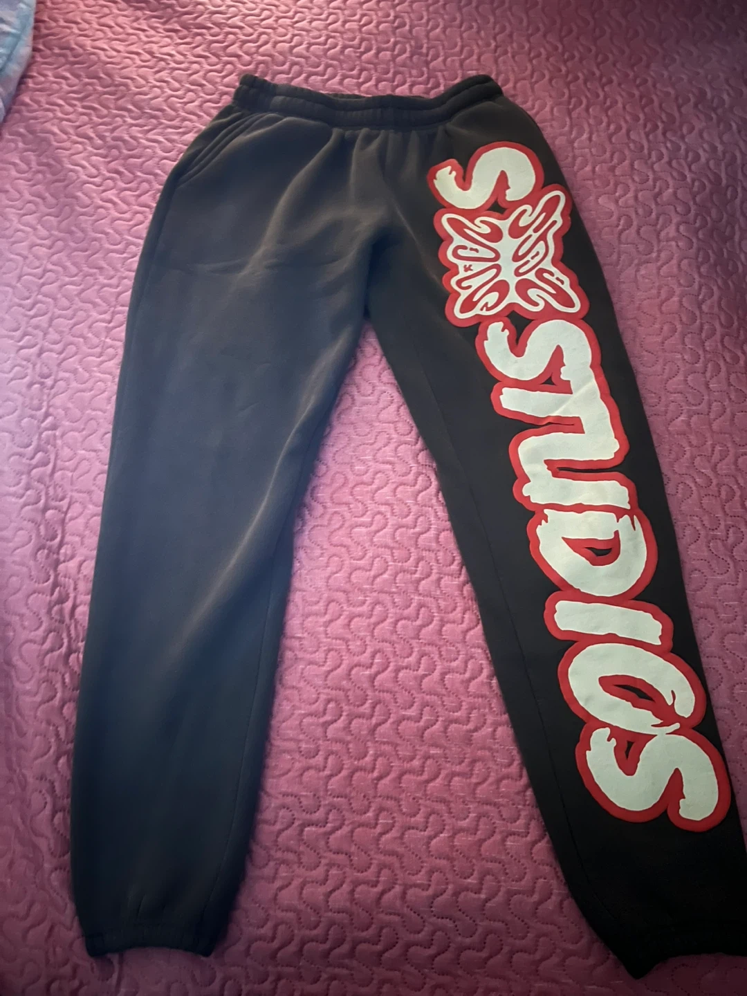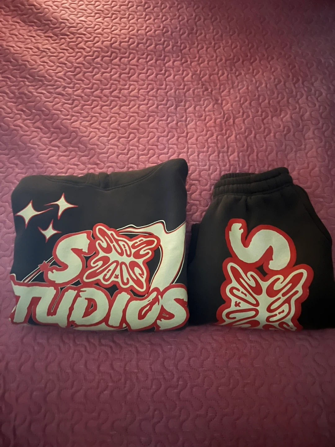 The hoodie fits a medium and even tho the pants is small it also fits a medium. Could try during purchase. Great condition.