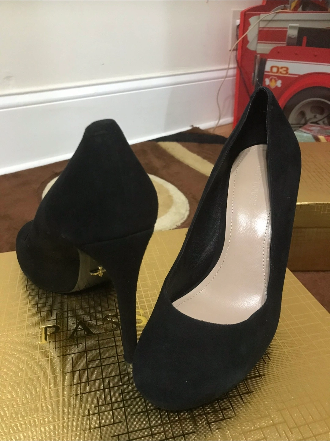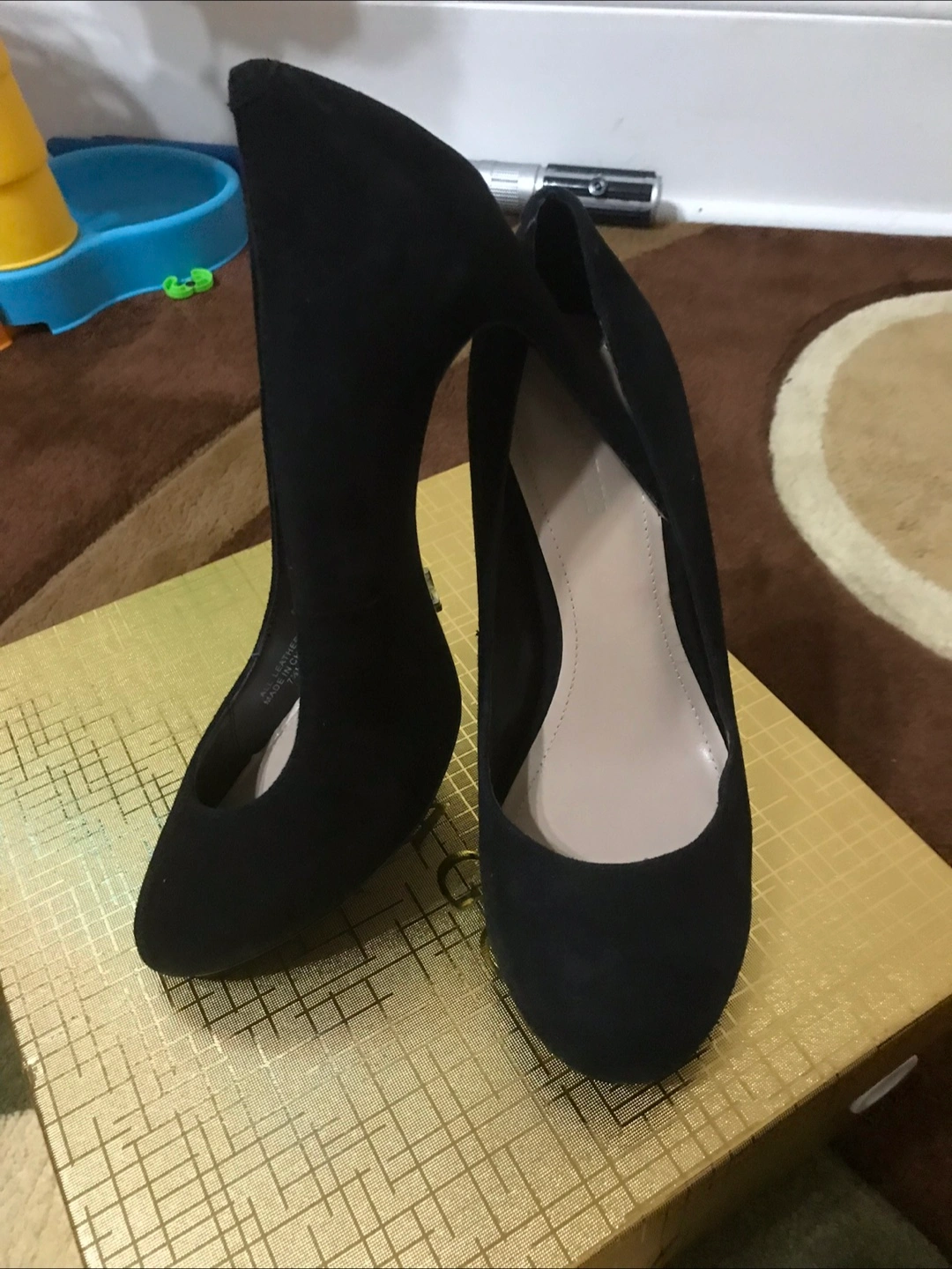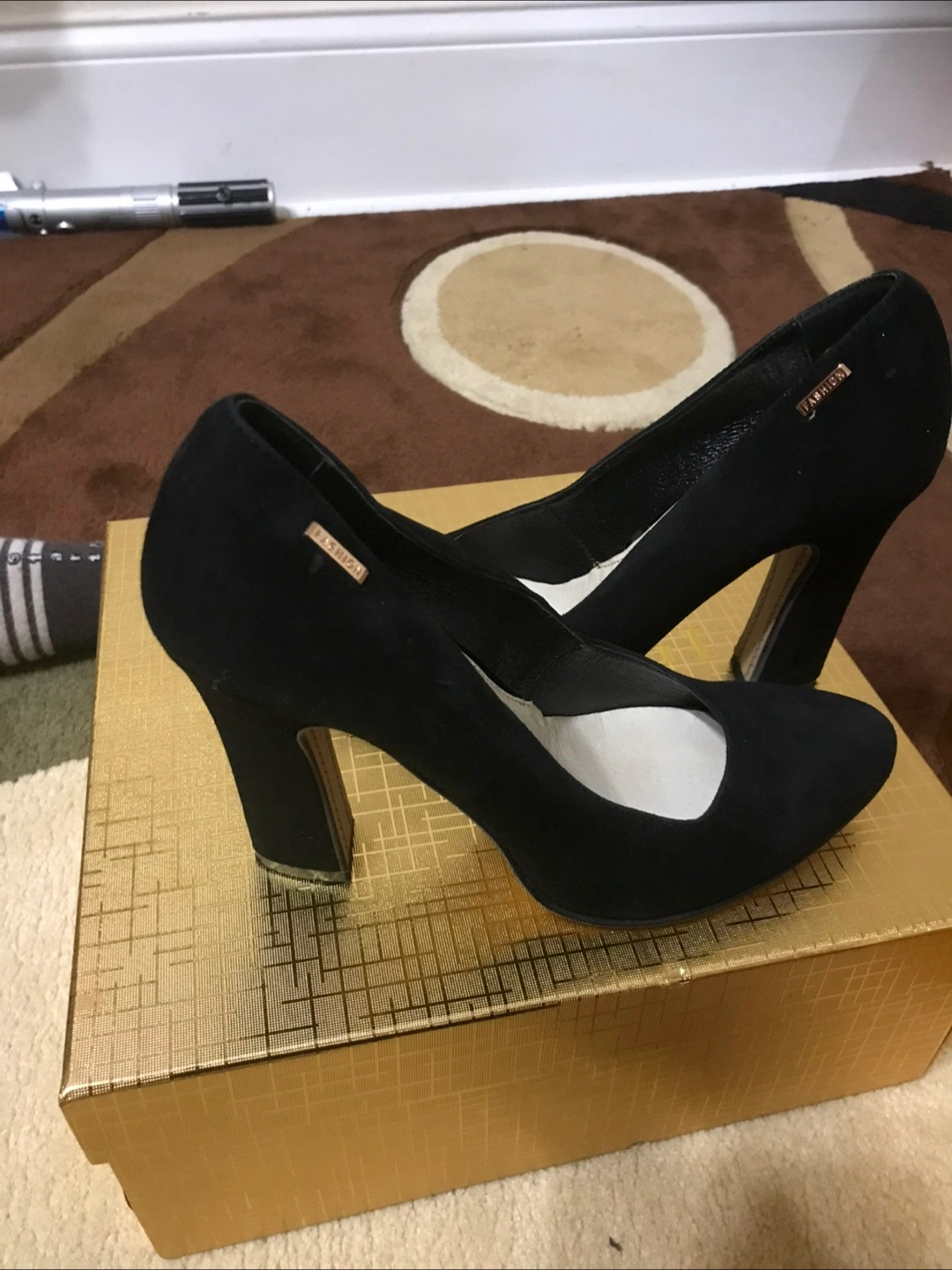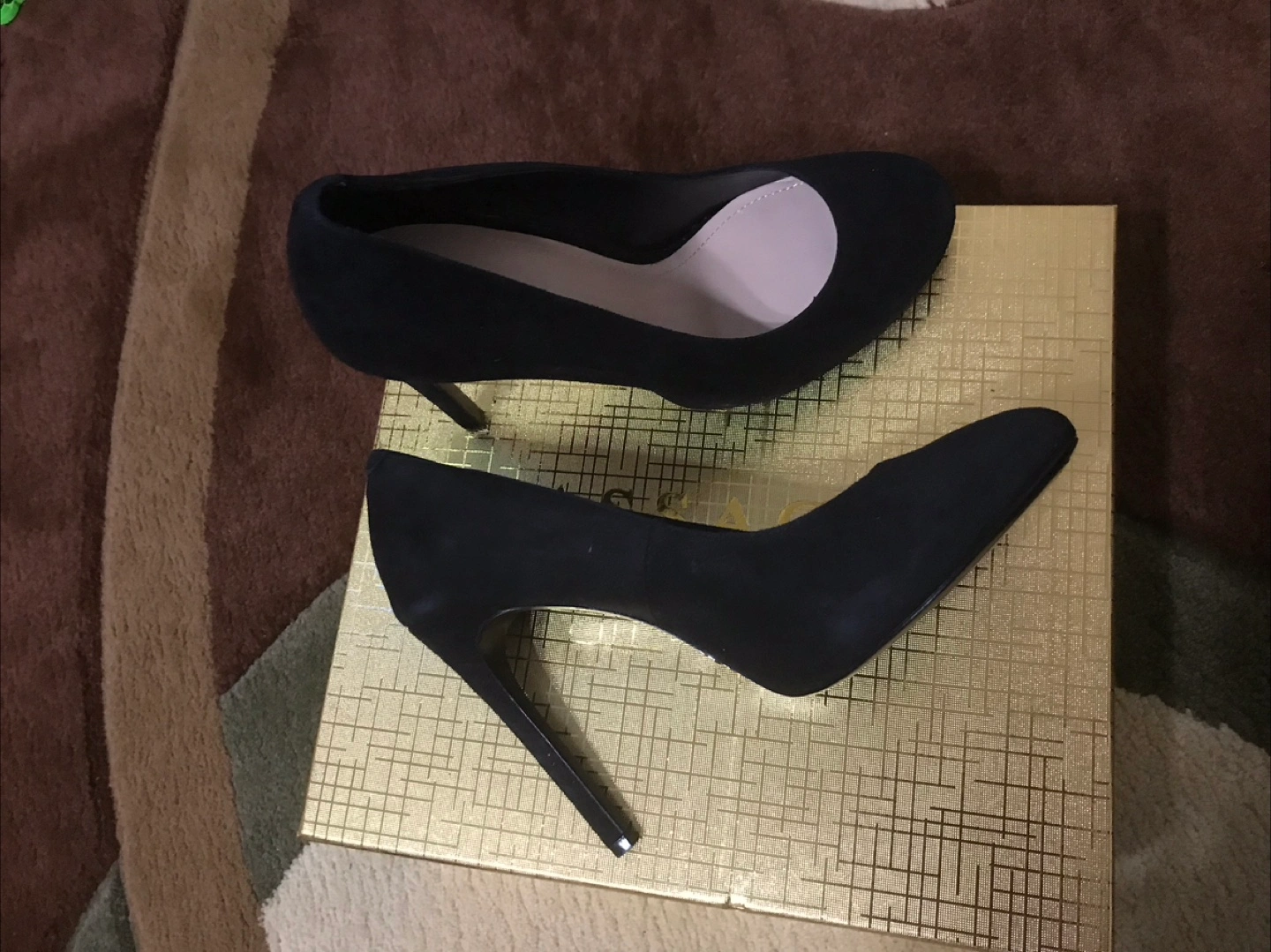 Pair of elegant black suede high heels. Classic pointed toe and stiletto heel. Worn once. Excellent condition.