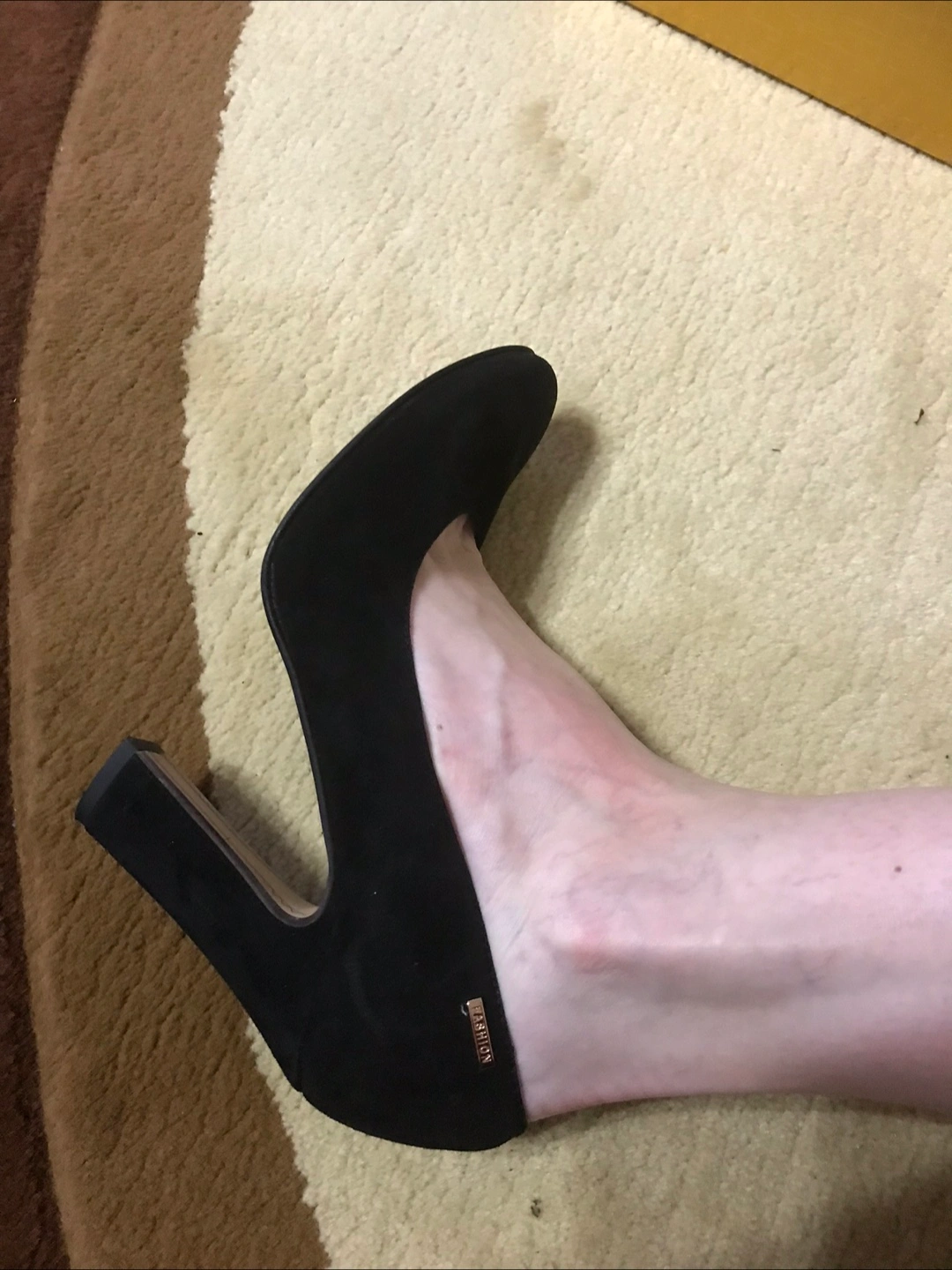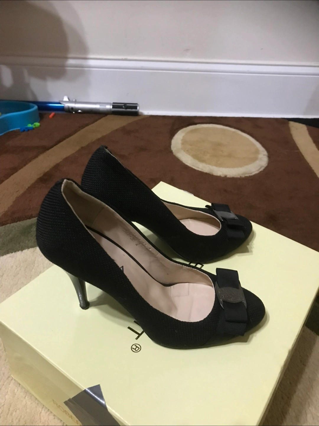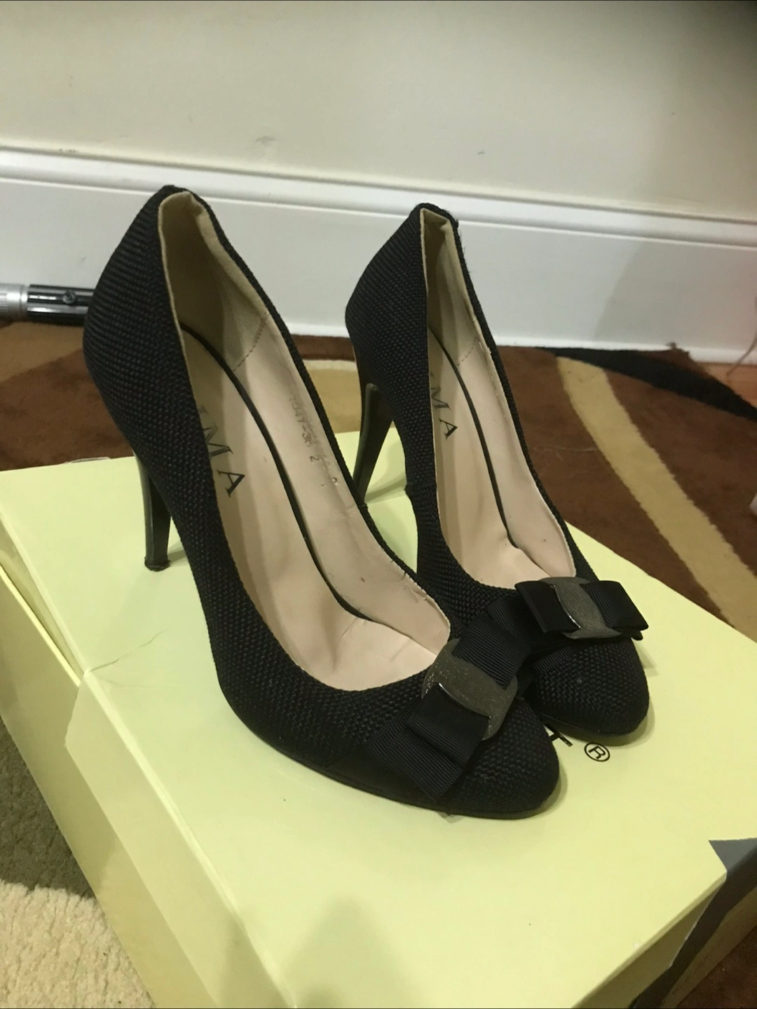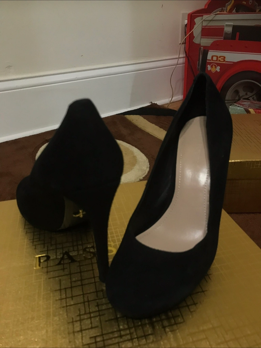 Pair of elegant black suede high heels. Classic pointed toe and stiletto heel. Worn once. Excellent condition.