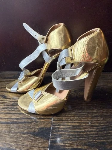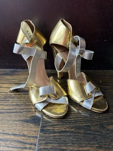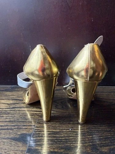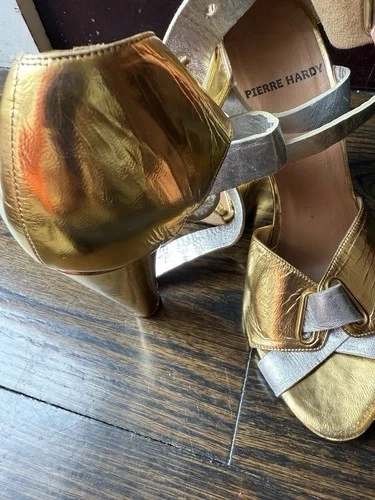 Vintage Gold & Silver Leather Pierre Hardy Peep Toe Pumps
