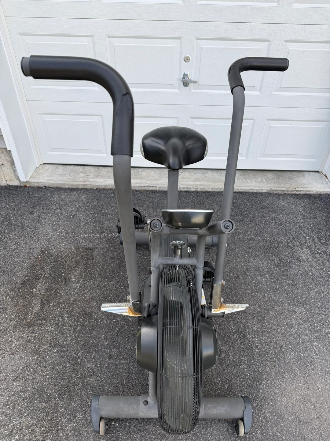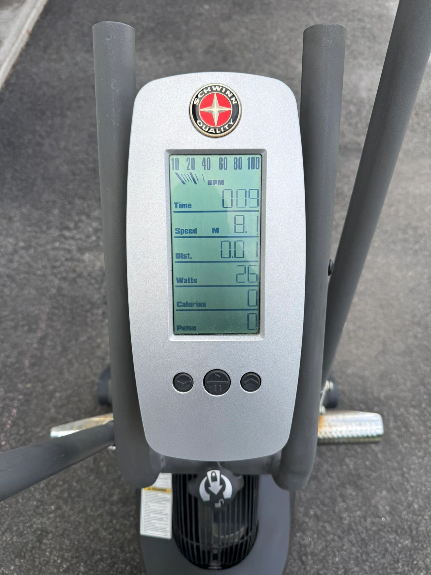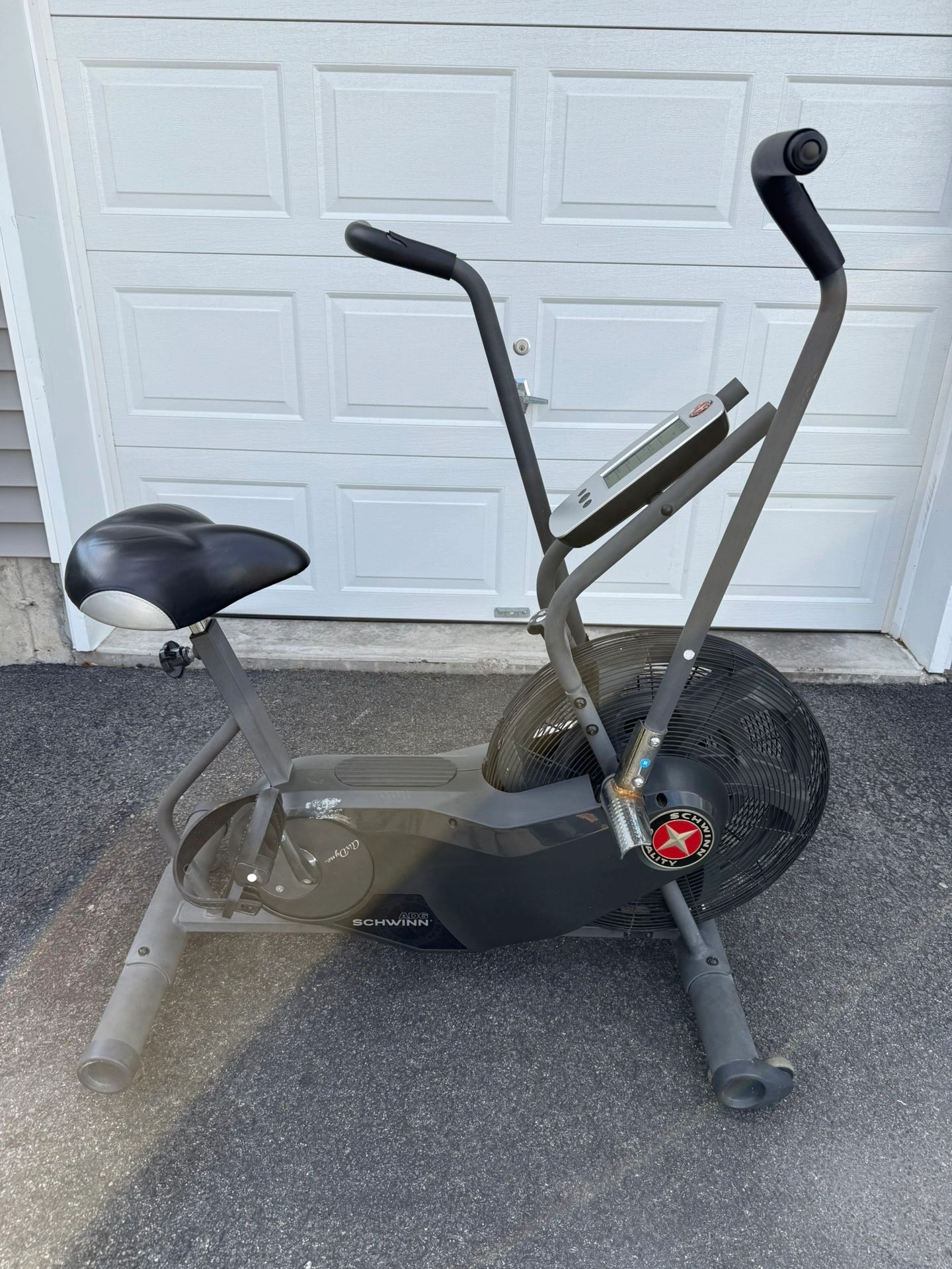 15Open to Offers! I’m selling for a friend. The Schwinn Airdyne AD6 is belt driven like the Rogue Echo Bike, so it requires less maintenance and operates just like the Rogue bike would, just not as heavy and has a smaller footprint. This bike is used, but operates like it should. Brand new batteries and the monitor works. Seat pad is in excellent condition. Brand: Schwinn Resistance: Air
