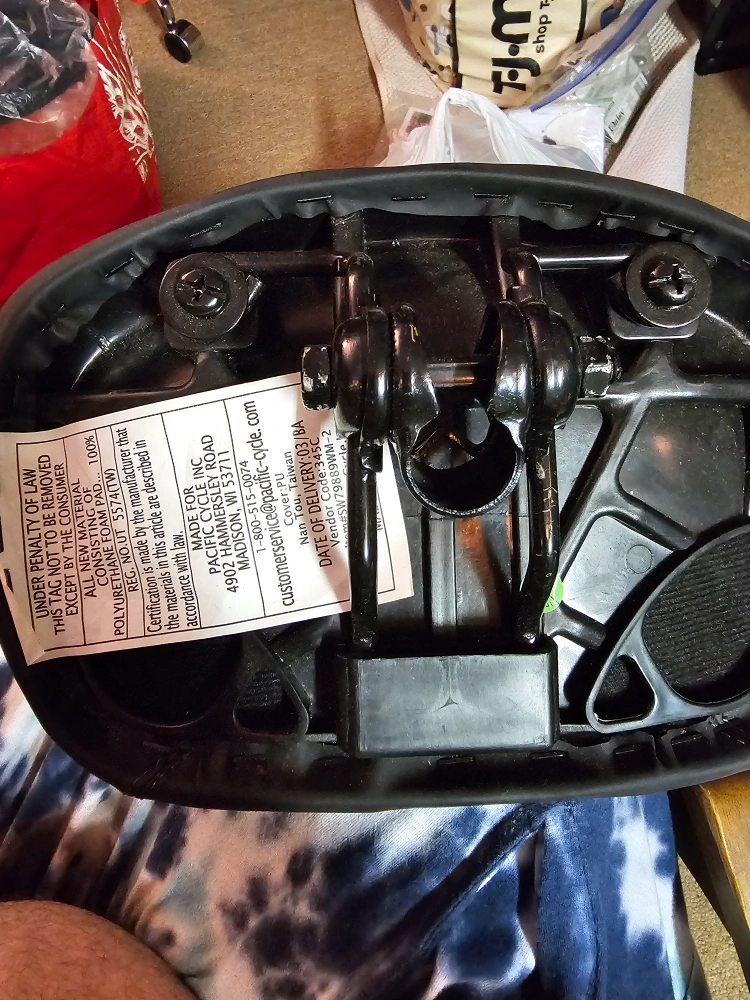 Selling a Schwinn comfort bike seat! It's in good condition and ready to be attached to your bike for a more comfortable ride. The seat is made of polyurethane foam pad and polyester knit fabric