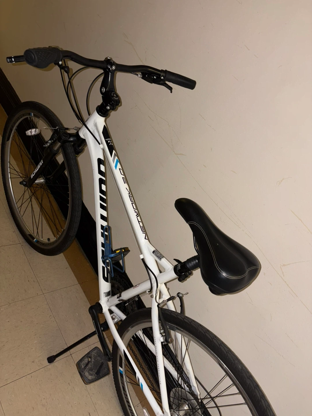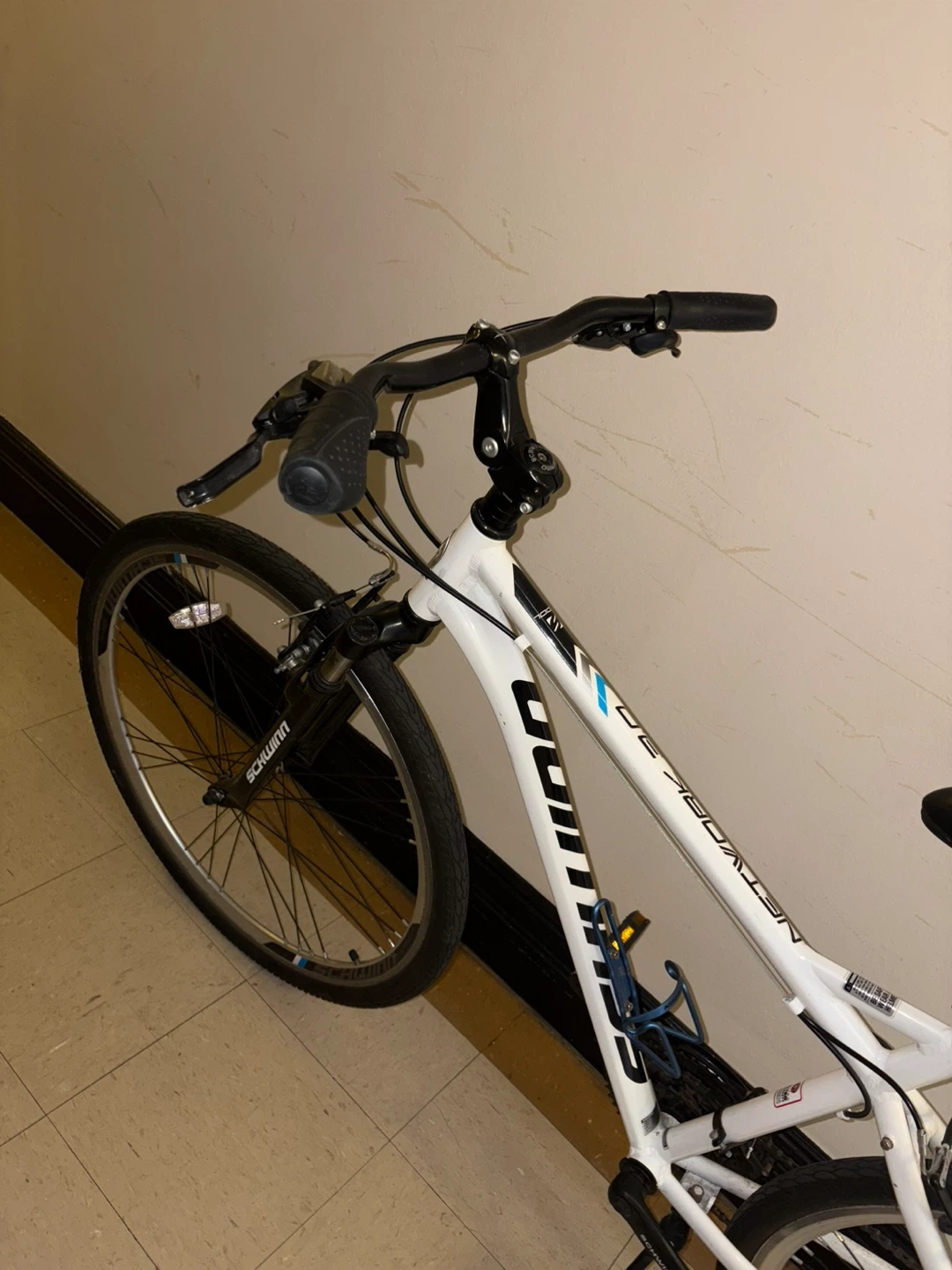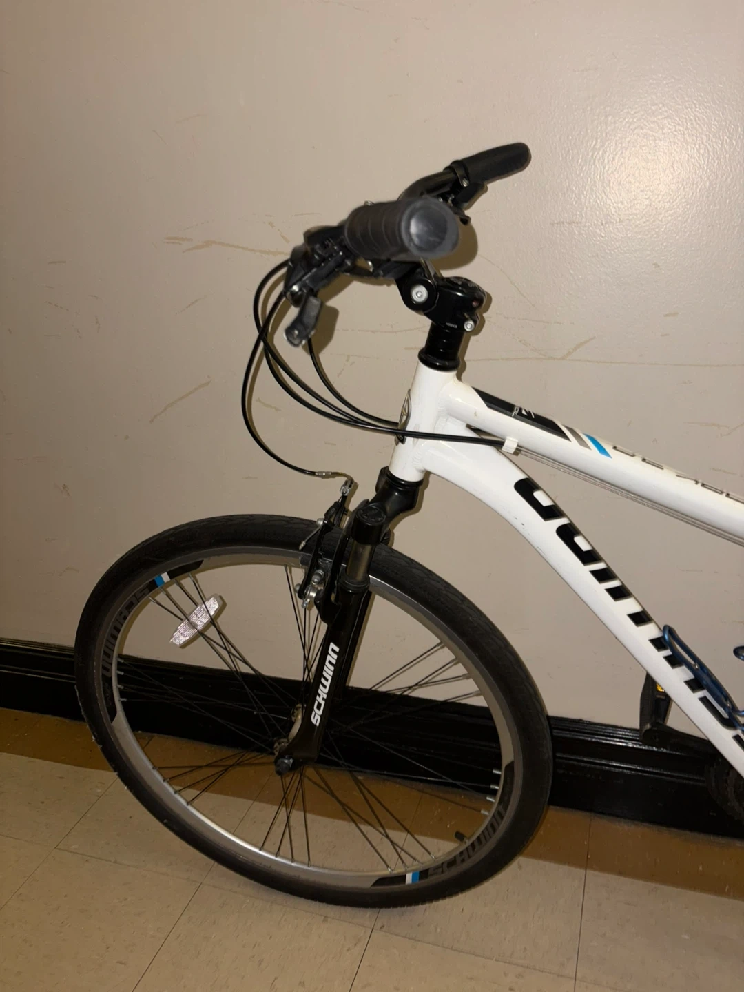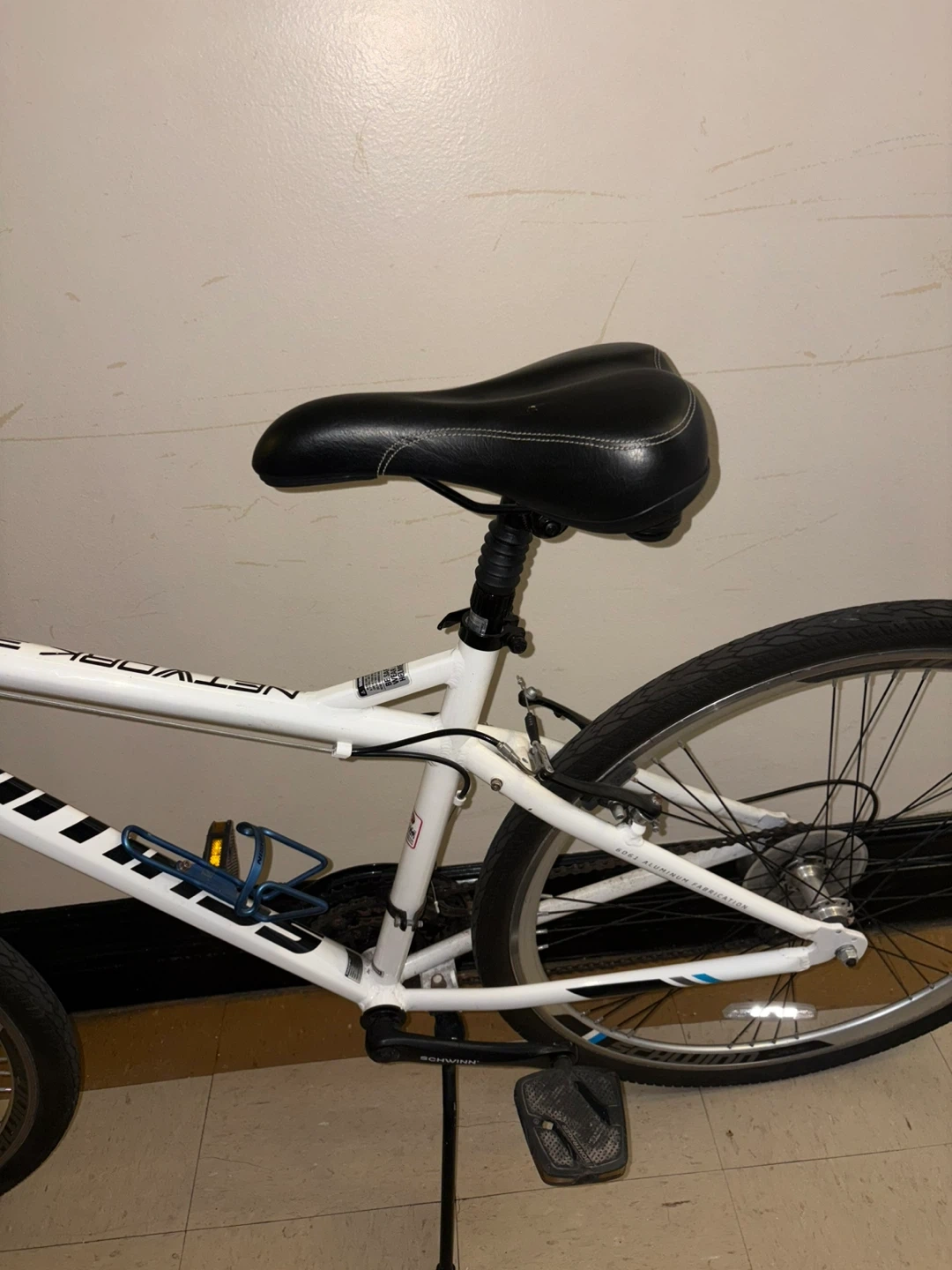Schwinn Network 3.0 Hybrid 700c 21-Speed 18" Aluminum Frame - White. Purchased June 2025. In specialized stores it goes for $1033. Only used 2 hours and practically new. No time wasters.Schwinn Network 3.0 Hybrid 700c 21 Speed 18" Aluminum Frame -White • Enjoy a smooth and efficient ride with the 18-inch alloy hybrid frame, with 28-inch wheels that fit riders 5'4" and 6'2" in height • Fast and accurate gear changes with the 21-speed twist shifters and rear derailleur • Superior stopping power with alloy linear pull brakes, and strong and lightweight alloy rims • Suspension seat post with a hybrid saddle and ergonomic grips provide a comfortable ride • Arrives 80% assembled, tools required: Philips head screwdriver, Allen wrench 4-8mm, adjustable wrench, pair of pliers with cable cutting ability