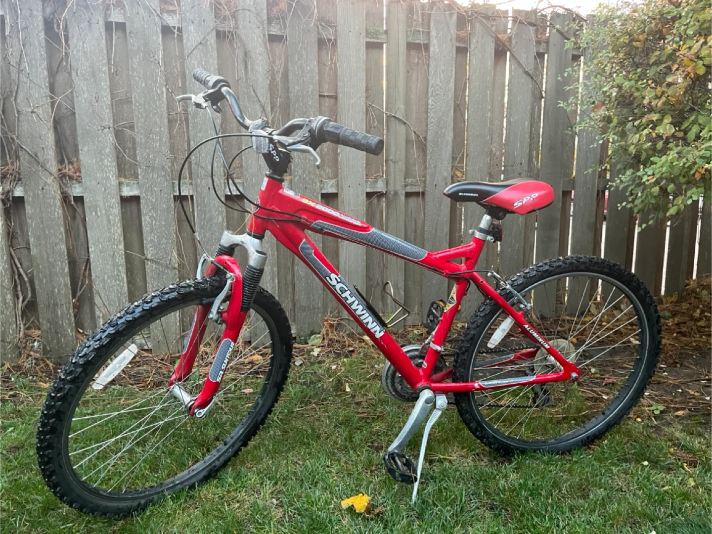 5Selling a red Schwinn SX 2000 Aluminum Hyperform bicycle! This bike is ready for new adventures and is in good condition. Perfect for cruising around the neighborhood or hitting some trails the right way hand gear change doesn’t work but the left hand gearing works fine. Bike also works fine