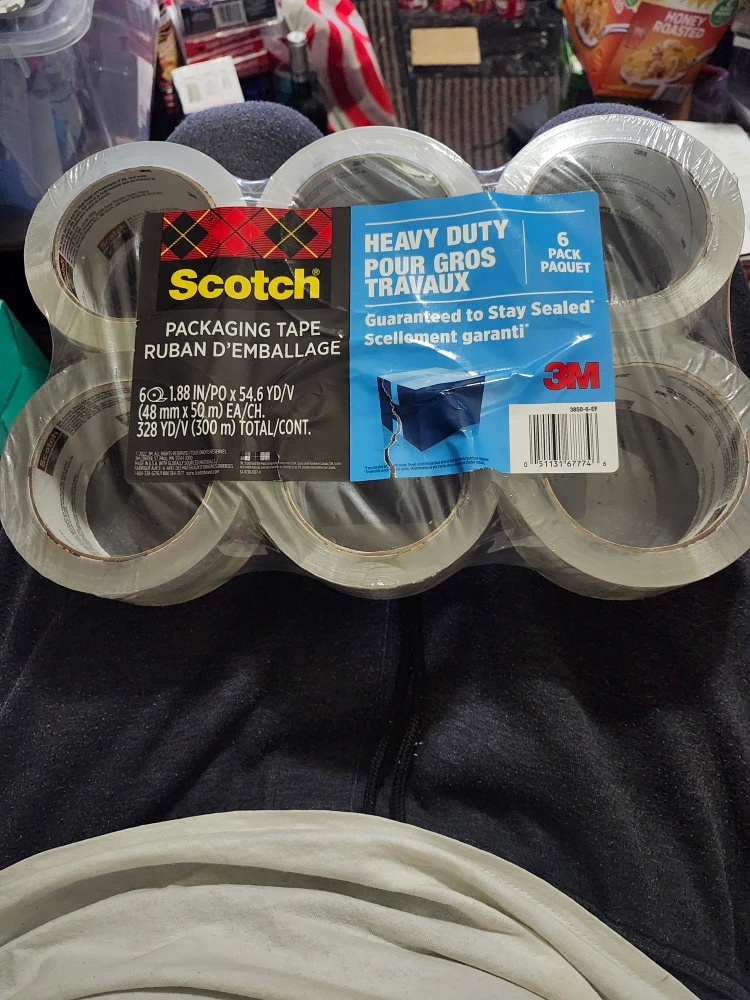 625Selling a 6-pack of Scotch Heavy Duty Packaging Tape! Each roll is 1.88 inches x 54.6 yards (48 mm x 50 m), totaling 328 yards (300 m). Perfect for all your packaging needs