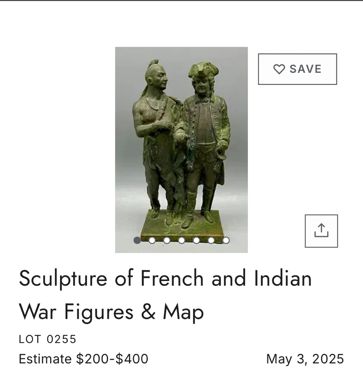 Selling a sculpture of French and Indian War Figures & Map. The estimate price is $200-$400