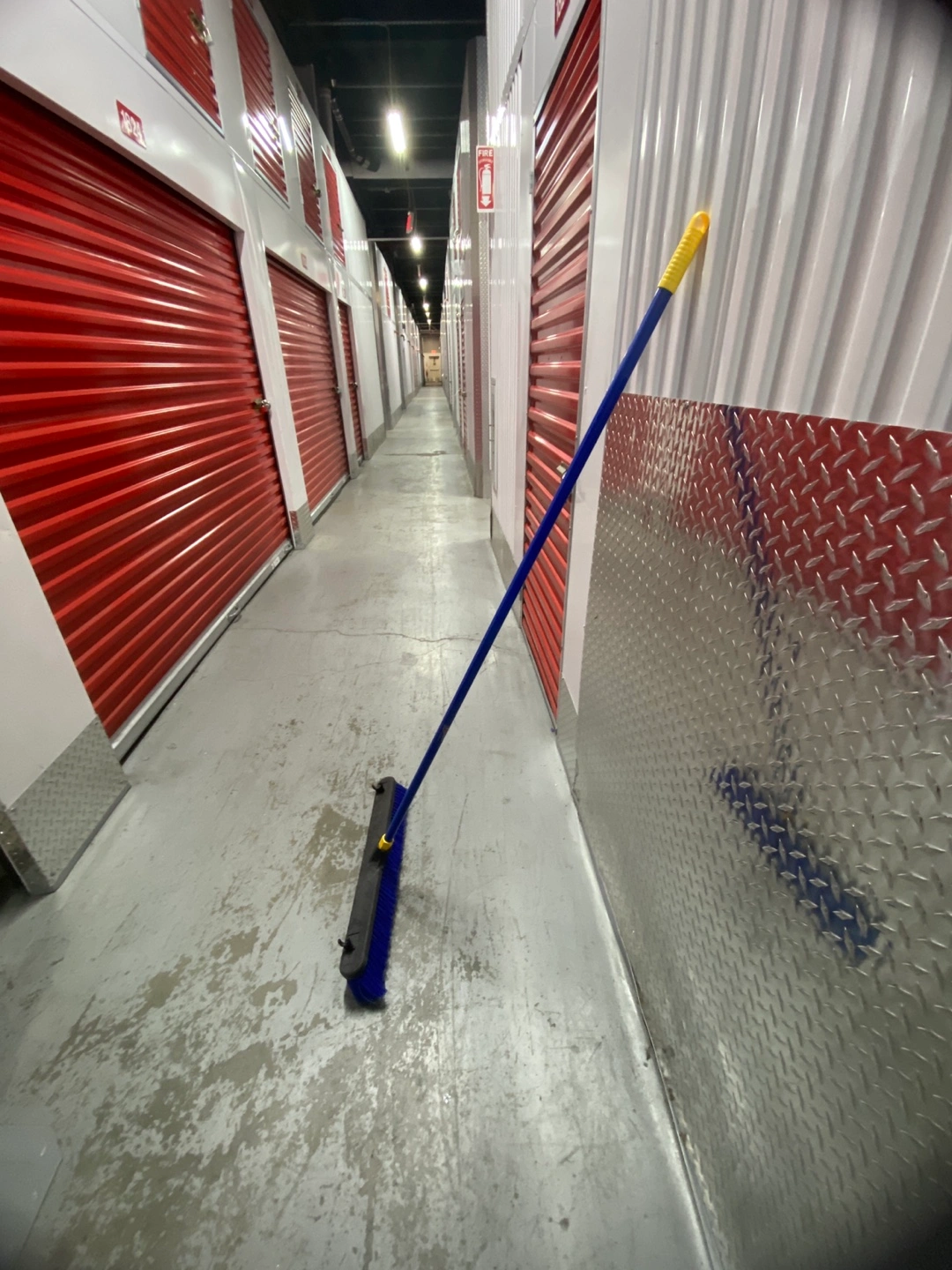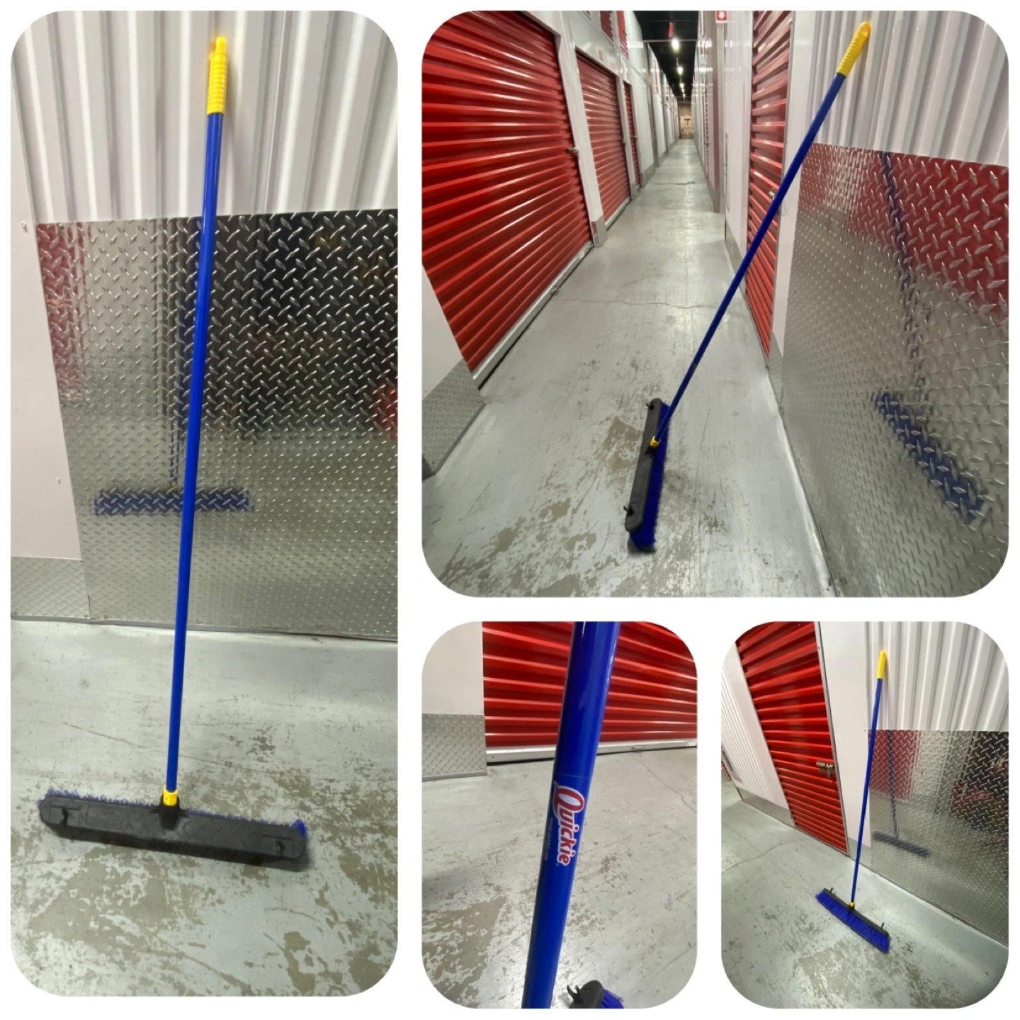 👷♀️The Quickie Bulldozer Push Broom features a rugged, specialized material designed for sweeping gravel, sticks, wet leaves and caked-on dirt. Use it on outdoor surfaces such as driveways, sidewalks and parking lots. It comes with clips attached to the block you can use to store the broom unassembled. If you don't want the clips, just remove them with pliers.