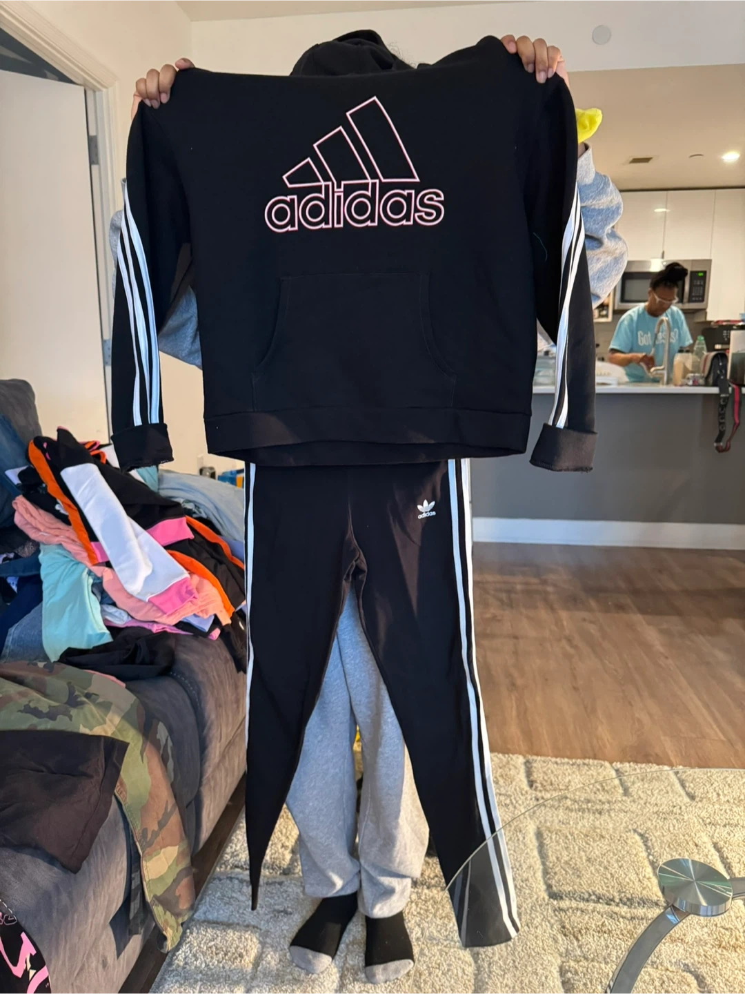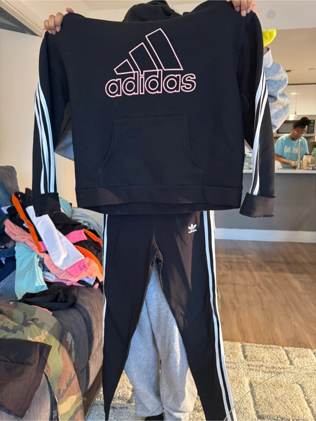 Adidas Black Hoodie and Pants Set
